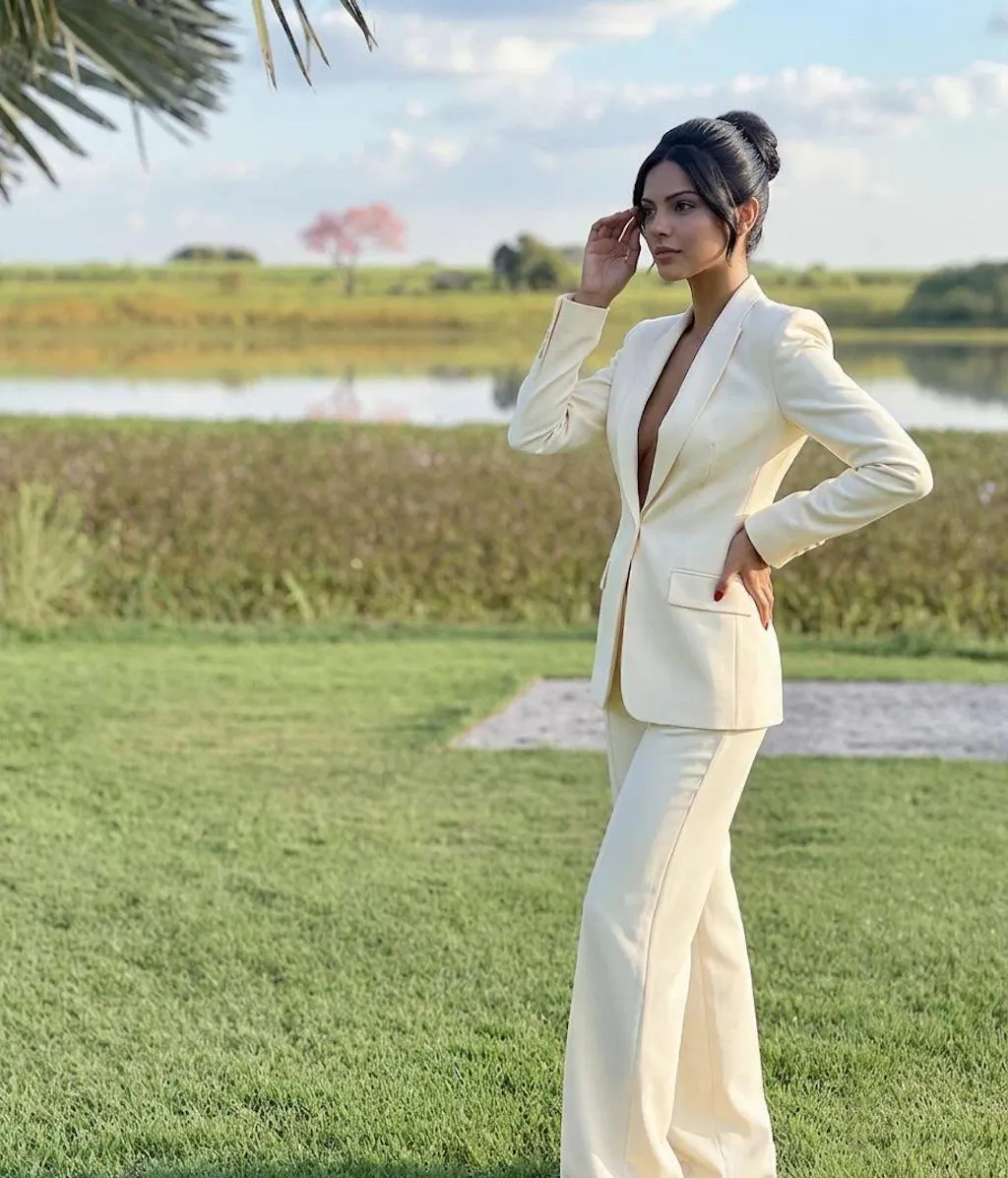2 Piece Ivory Satin One Button Single Breasted Shawl Lapel Business Suits