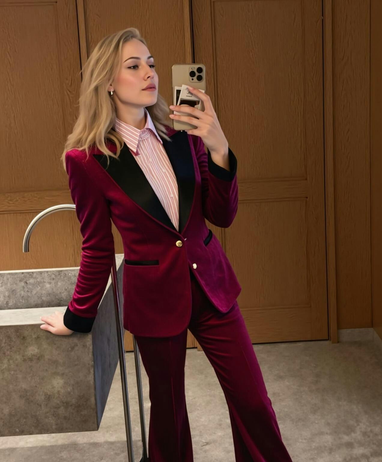 Burgundy Velvet 2 Piece Peak Lapel Single Breasted Long Sleeves Prom Suits
