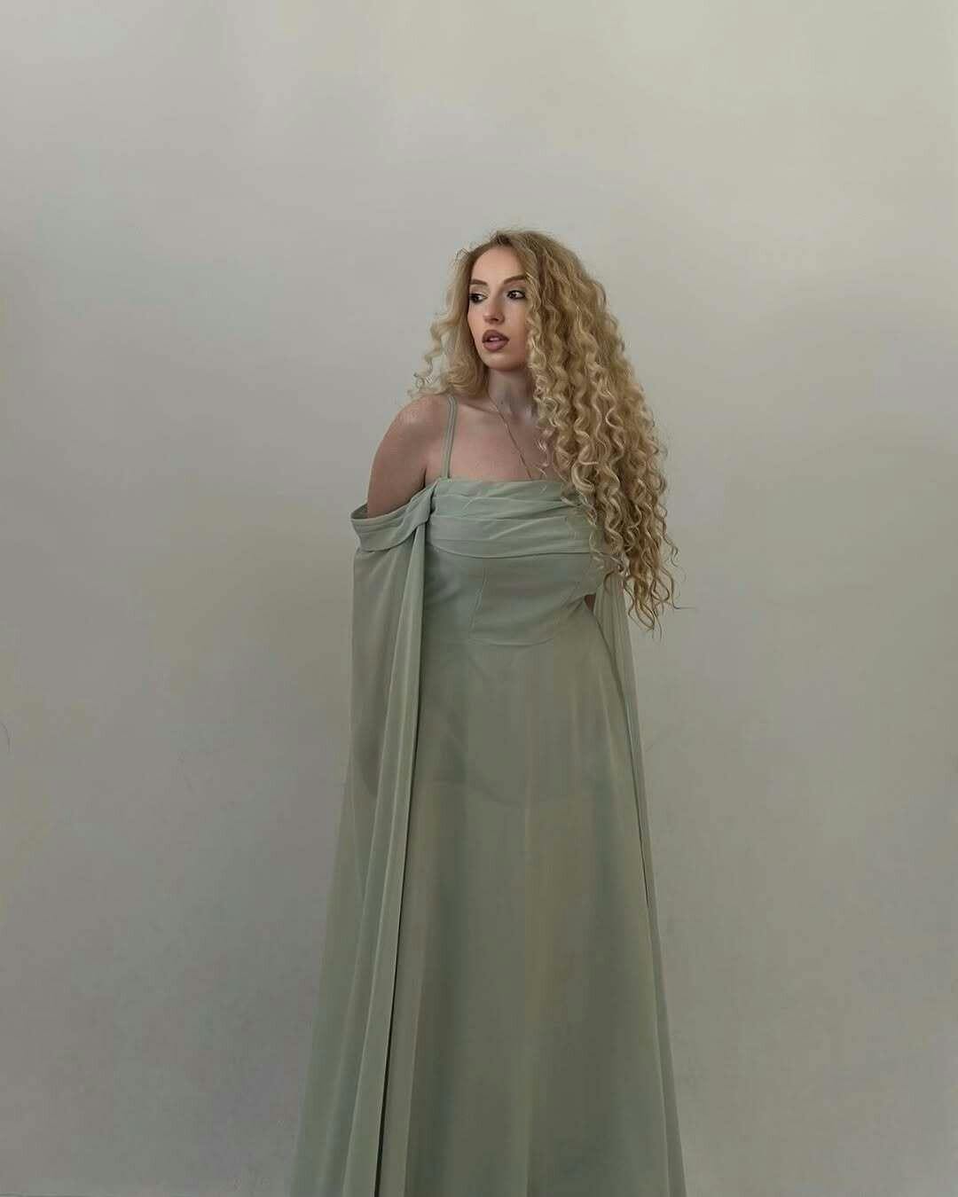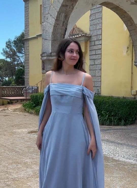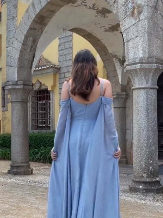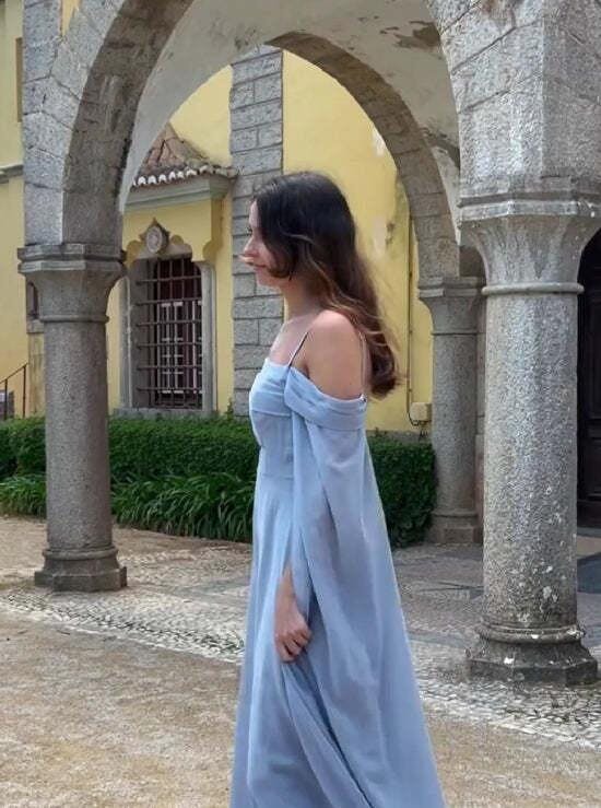 Light Green Cold Shoulder Detachable Sleeves A-Line Chiffon Long Bridesmaid Dress