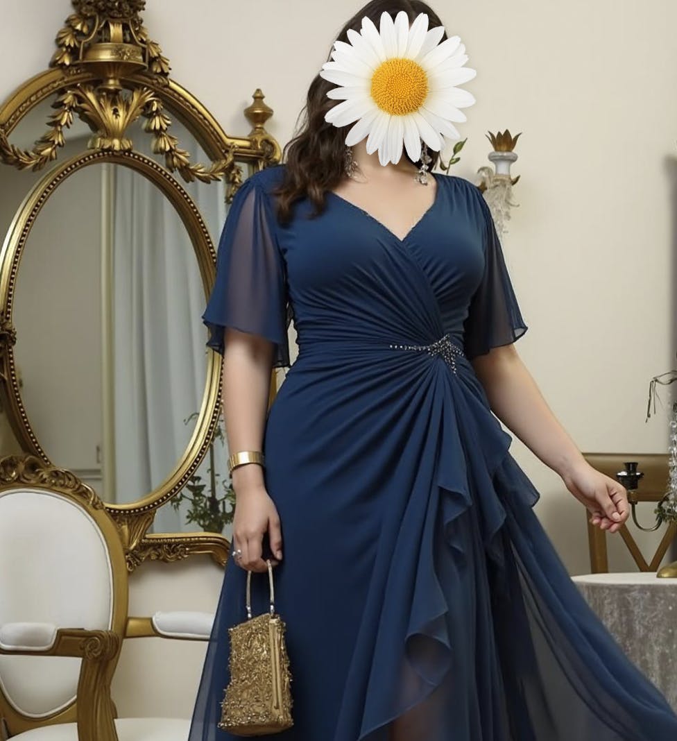 Occasion: This Navy V-Neck Ruffled Long Mother of the Bride Dress also can suitable for Evening, Military Ball, Formal, Black Tie Wedding Guest, Wedding Party, Gala, Mother Dress, Wedding Guest Dress, Prom, Formal Wedding Guest and other various formal occasions.