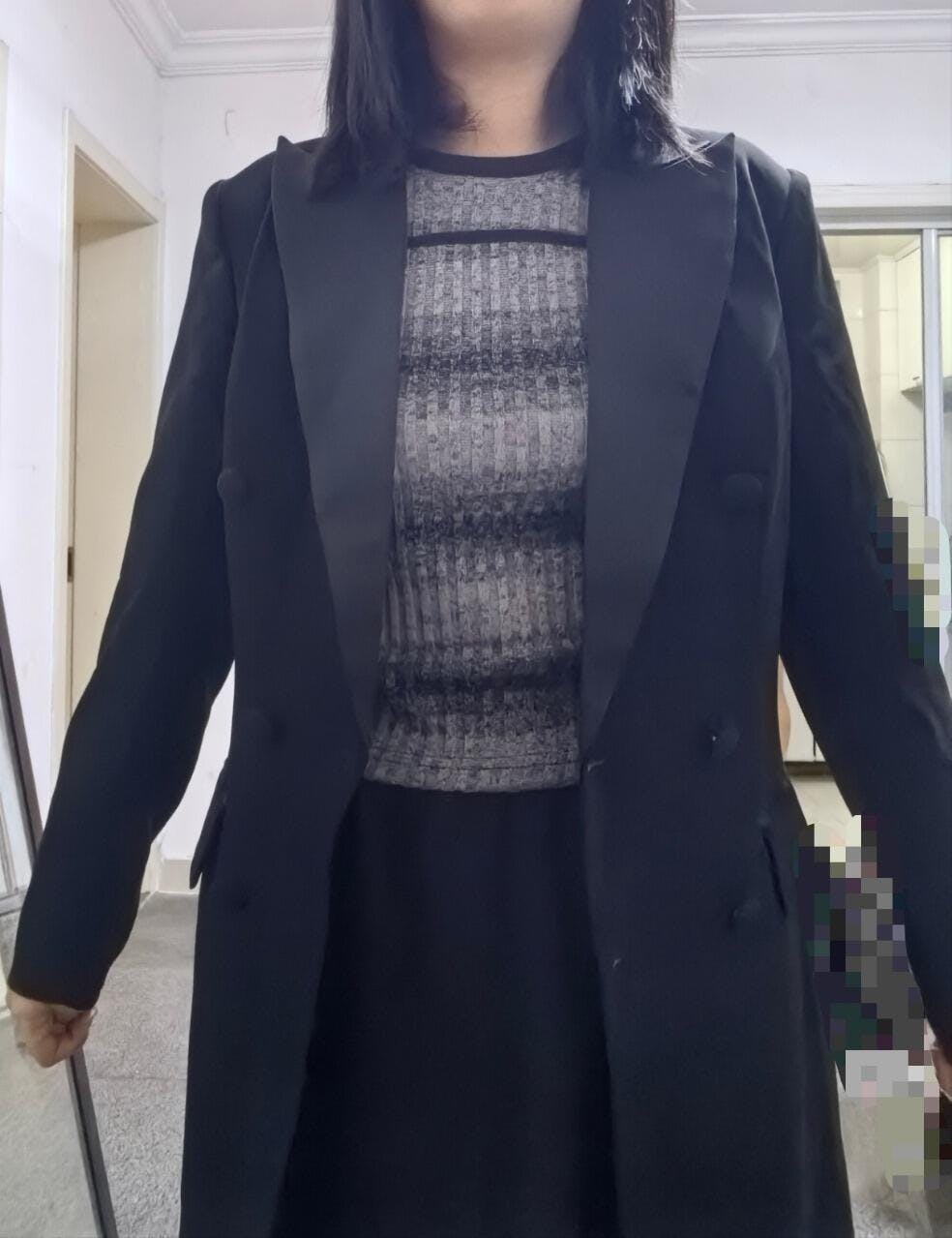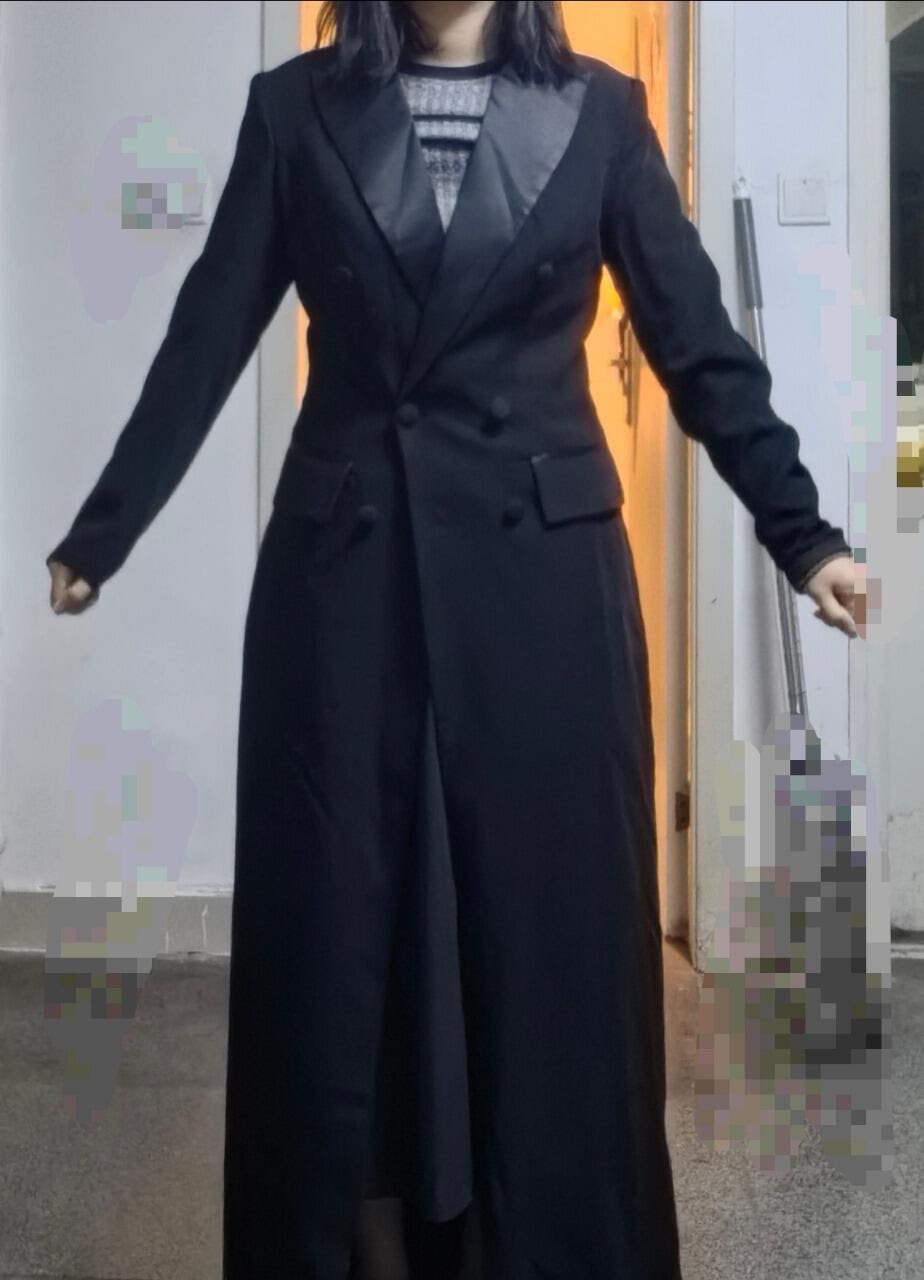 Black Pencil Peak Lapel Double Breasted Long Blazer Dress with Sleeves