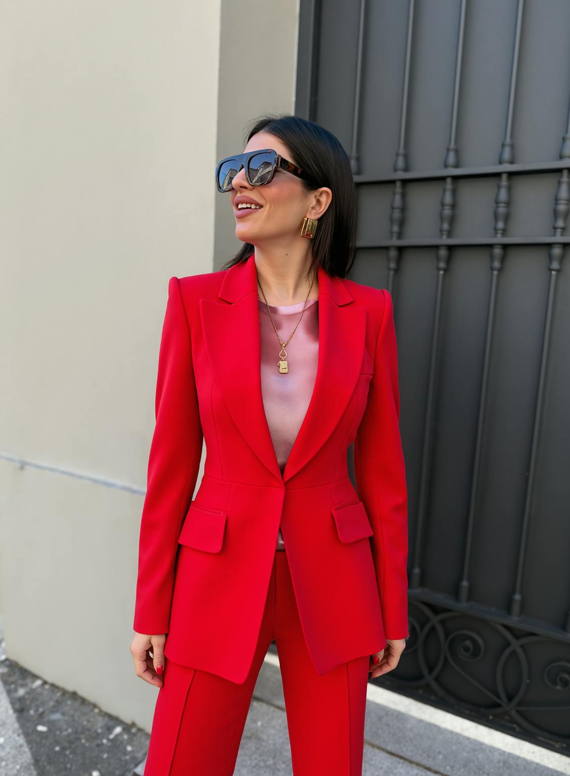 2 Piece Red Notched Lapel Long Sleeves Prom Suits with Pockets