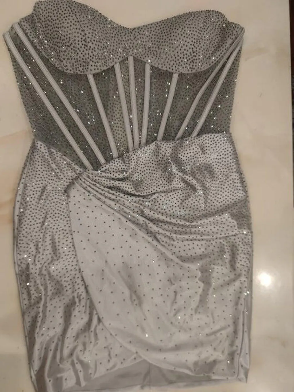 Occasion: This sparkly grey silver short tight dress with corset styles and strapless neckline is suitable for homecoming, graduation, bridal shower, bachelorette party ,night out, date night, cocktail, going out, vacation, party, club, dance, birthday, and other occasions. Wear this little white dress and enjoy the feeling of being different!
