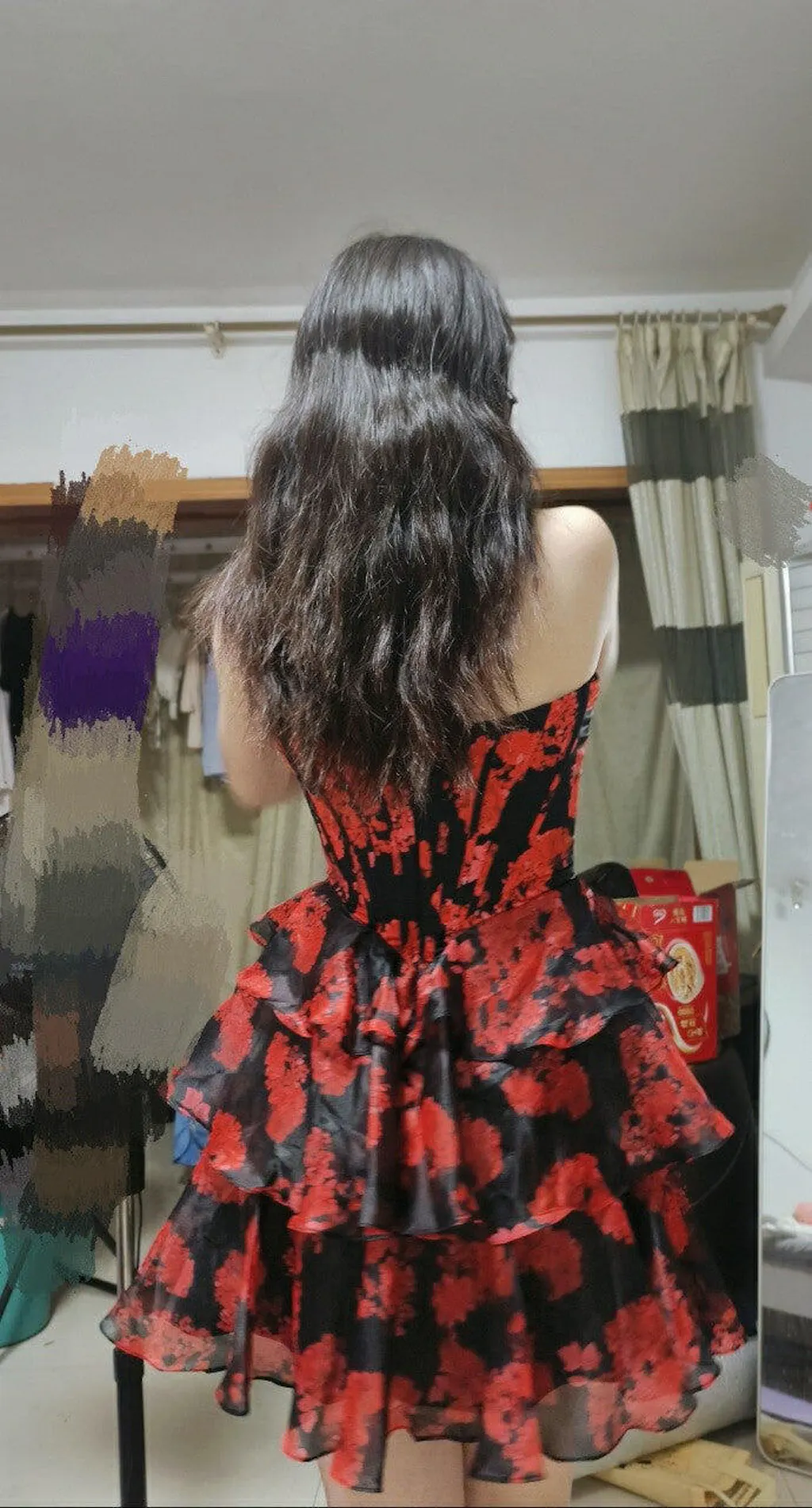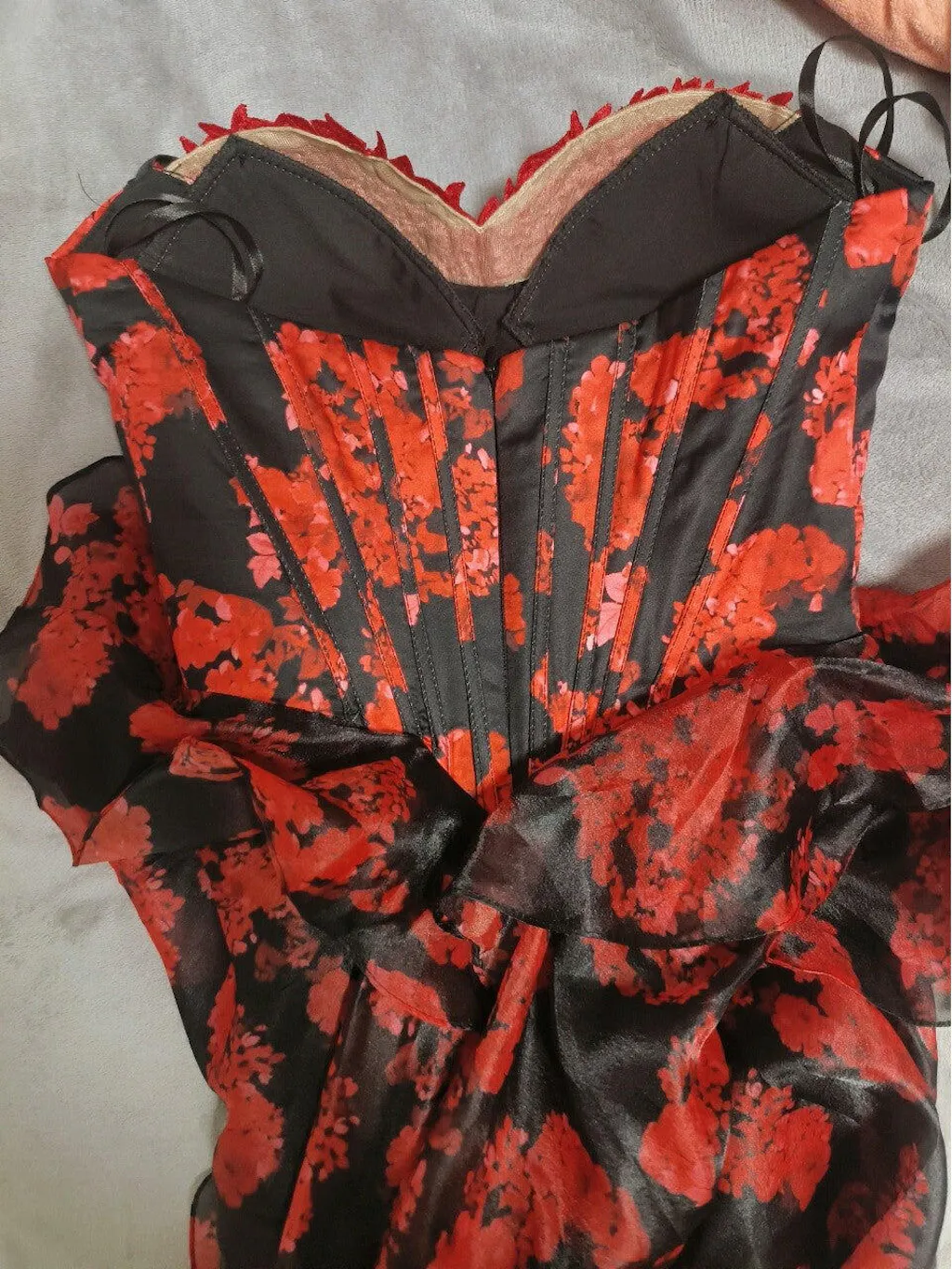 Black and Red Corset Sweetheart Floral Short Homecoming Dress with Ruffles