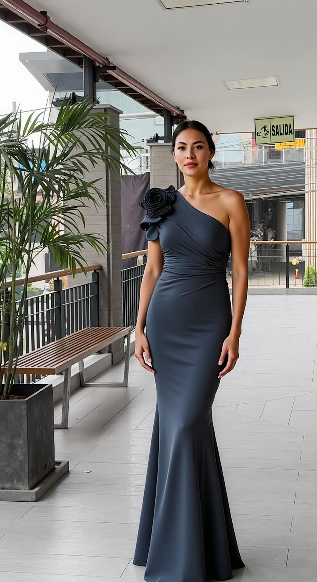 Floral Black Satin Mermaid One Shoulder Long Mother of the Bride Dress