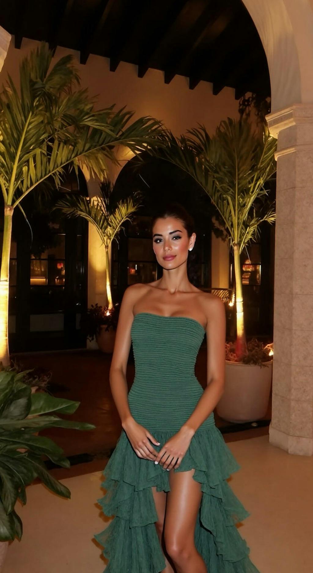 Eucalyptus Strapless Tulle Tiered Ruffles Formal Dress