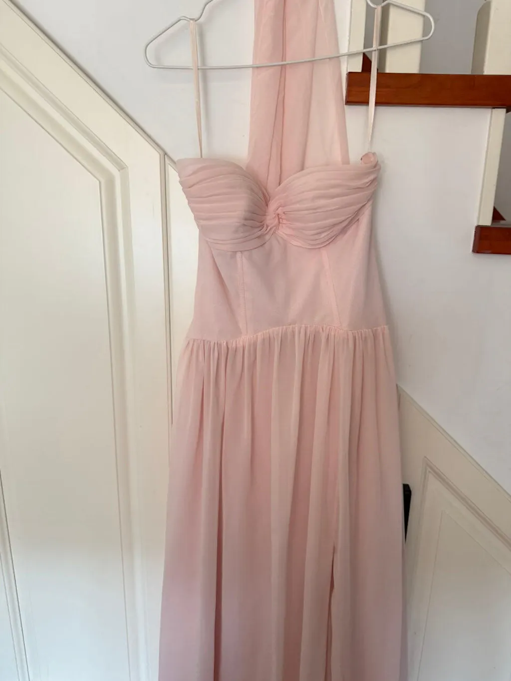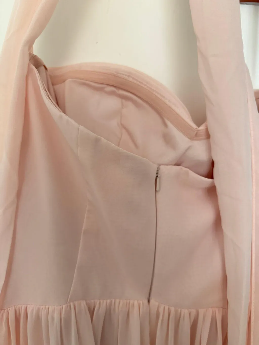 Blush Chiffon Corset Neck Scarf Long Bridesmaid Dress with Slit