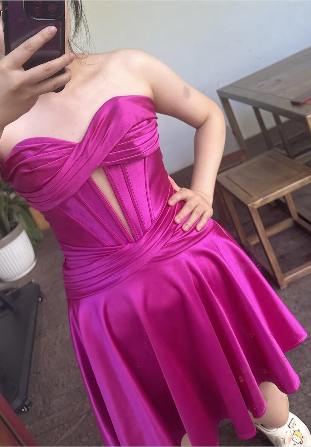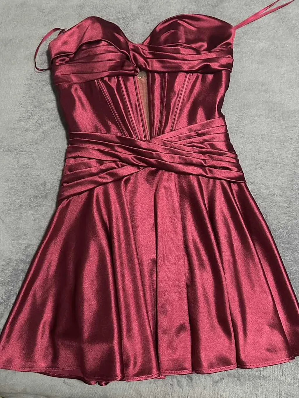 Burgundy A Line Sweetheart Strapless Keyhole Satin Homecoming Dress