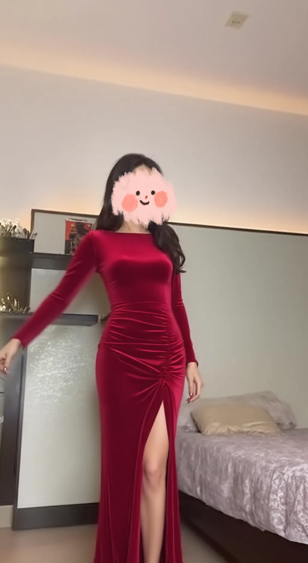 Burgundy Velvet Boat Neck Ruched Long Sleeves Holiday Party Dress