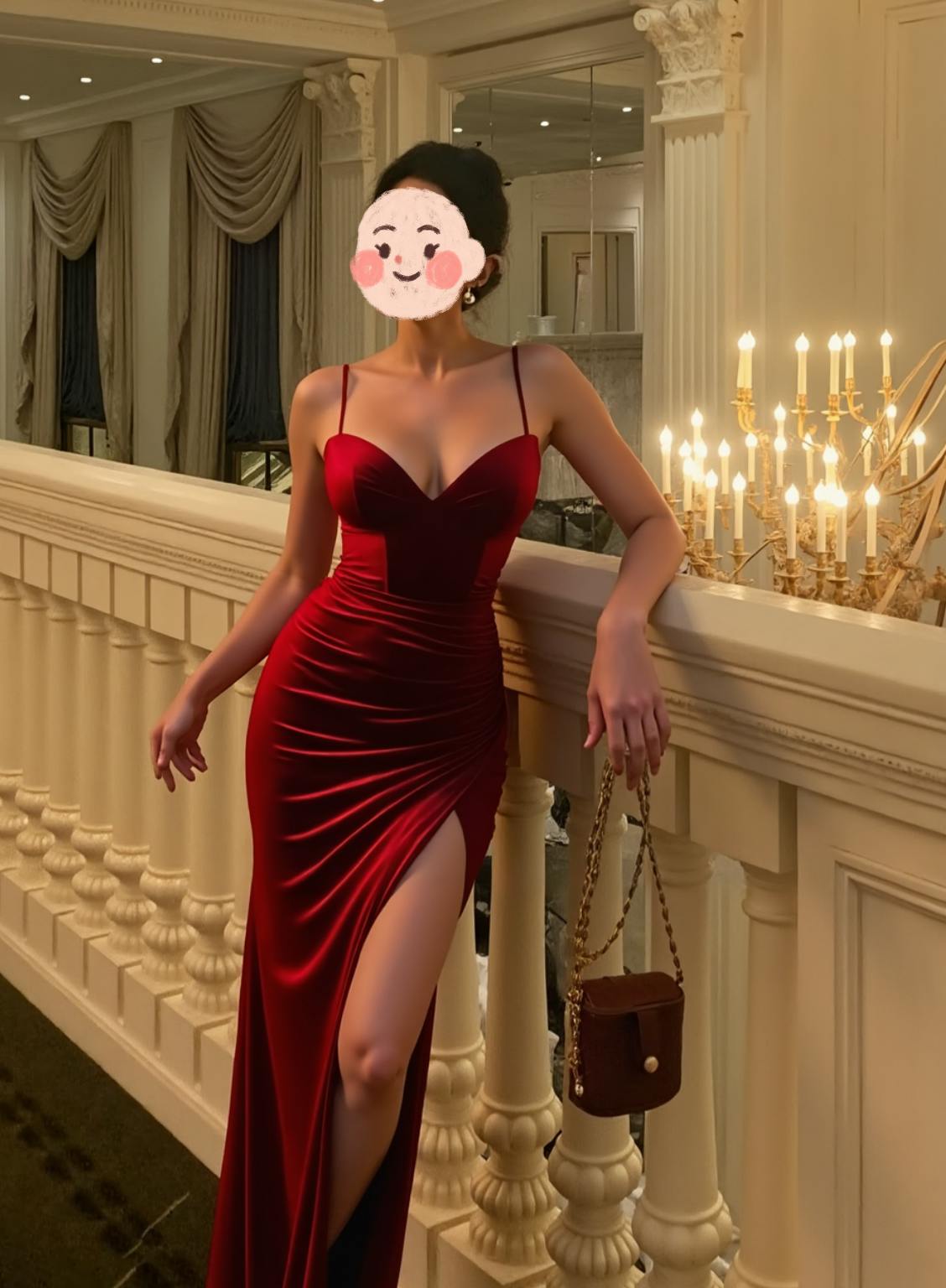 Burgundy Velvet Mermaid Ruched Long Holiday Party Dress with Slit