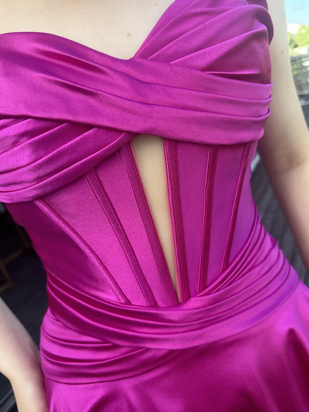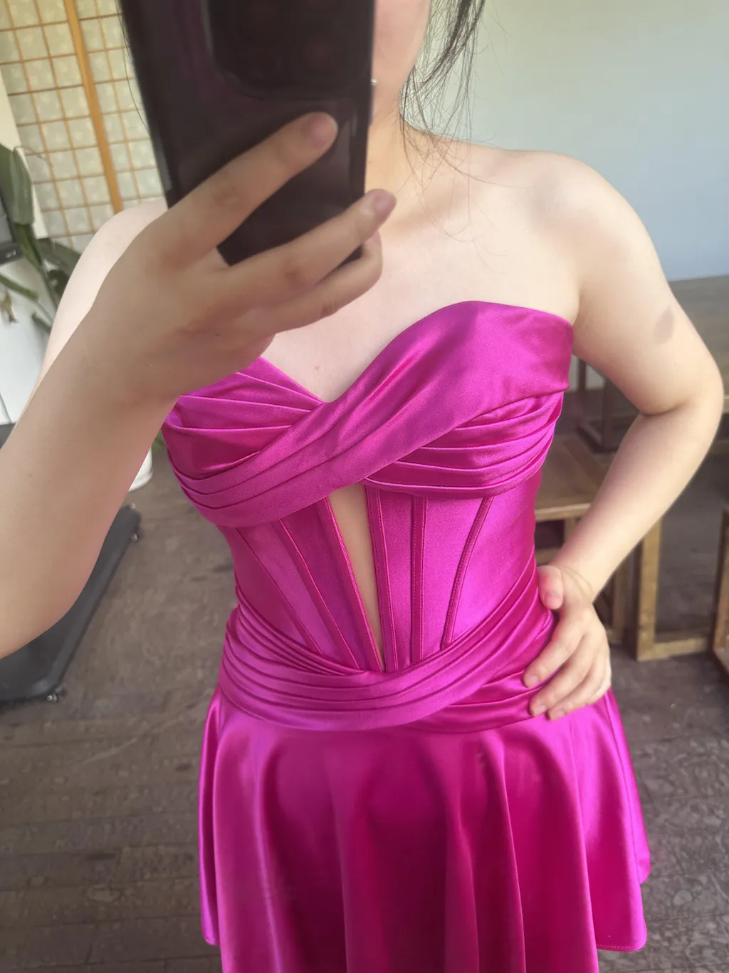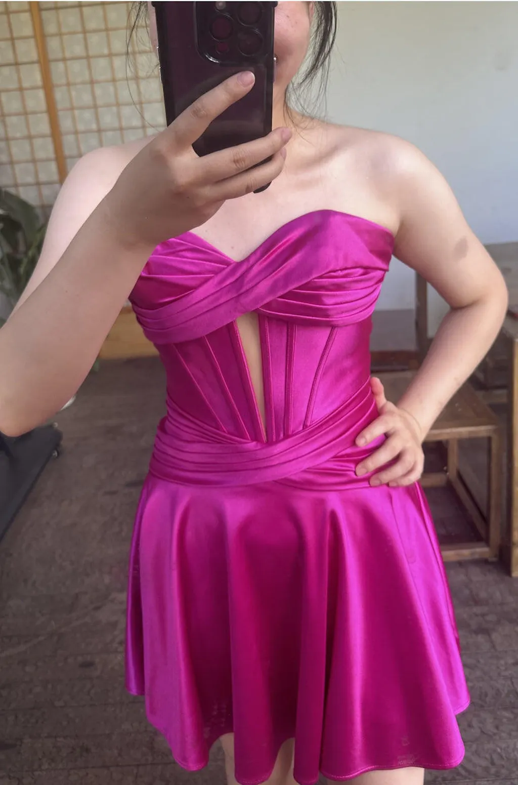 Fuchsia A Line Strapless Satin Short Homecoming Dress