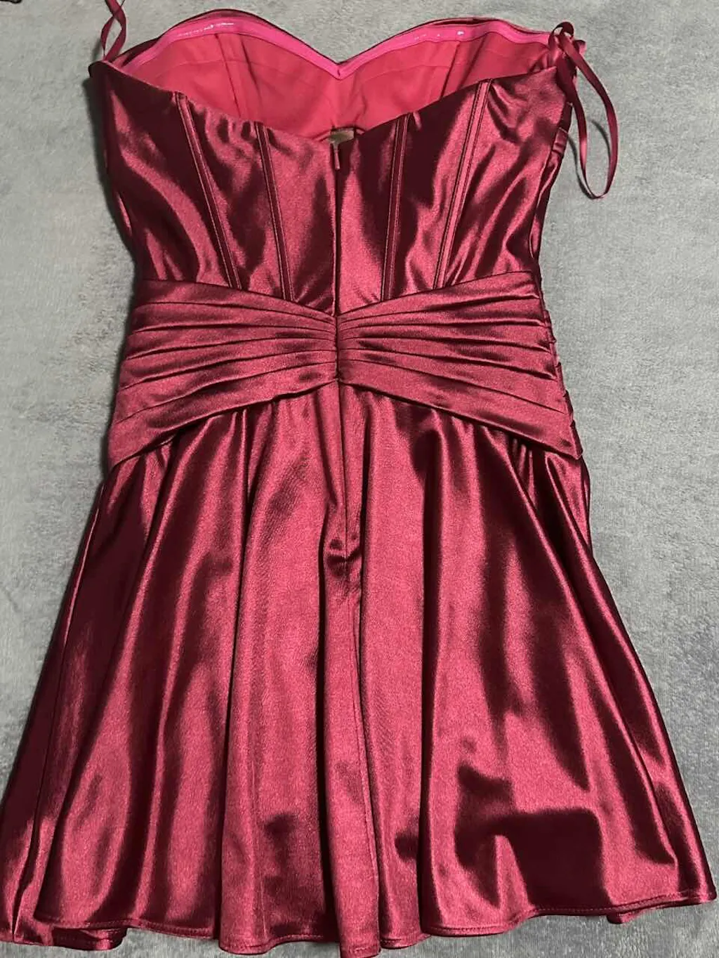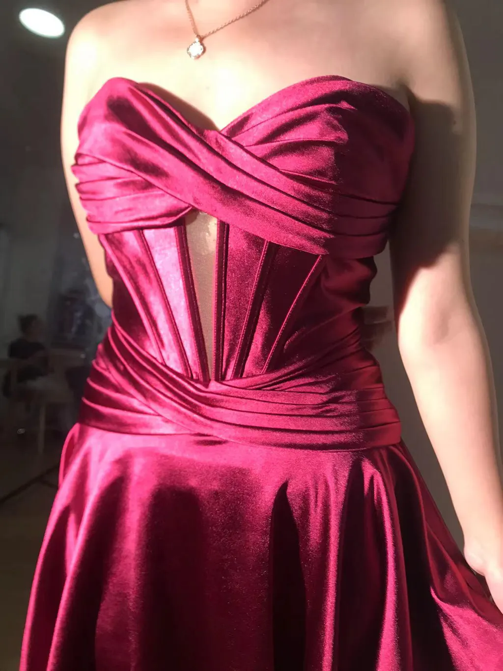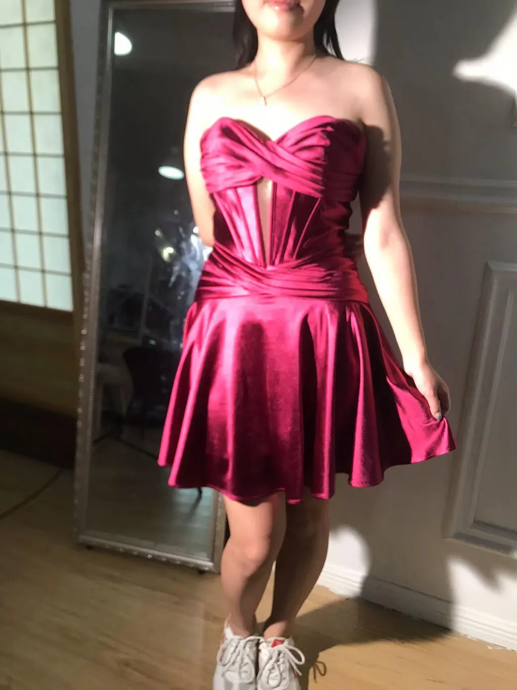 Fuchsia A Line Strapless Satin Short Homecoming Dress