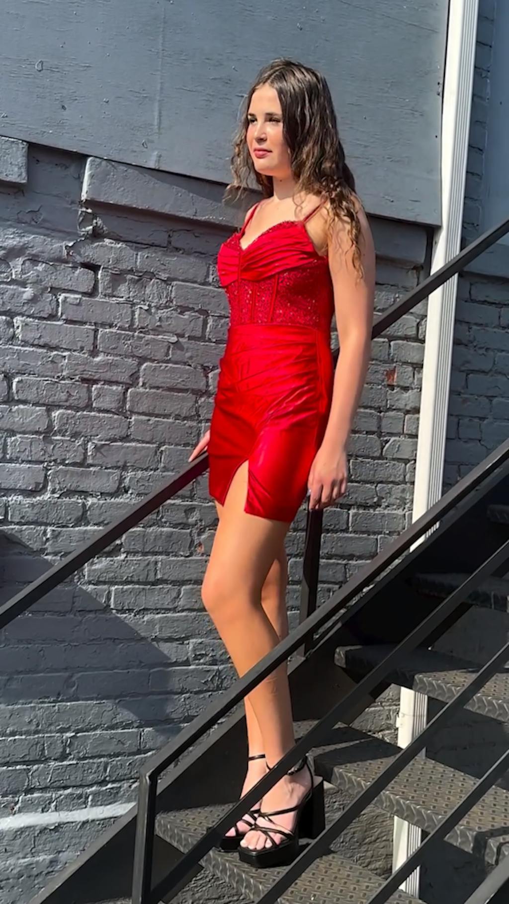 Golden Spaghetti Straps Bodycon Corset Satin Homecoming Dress with Slit