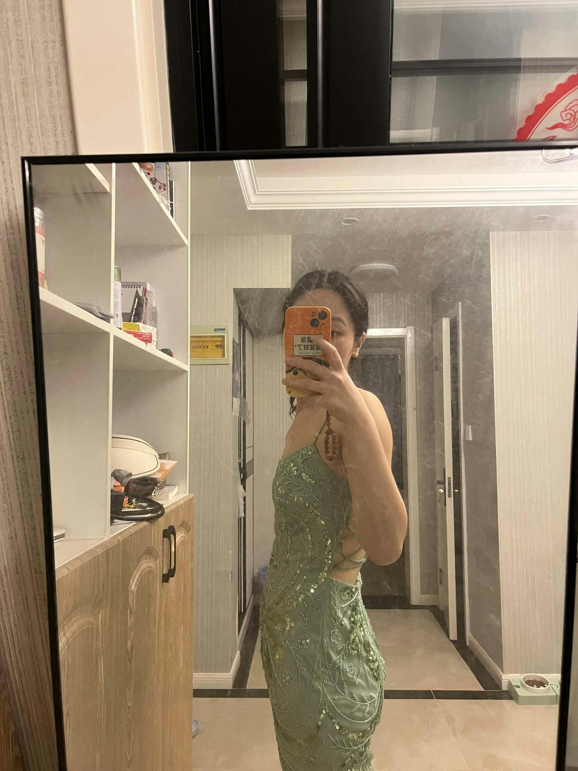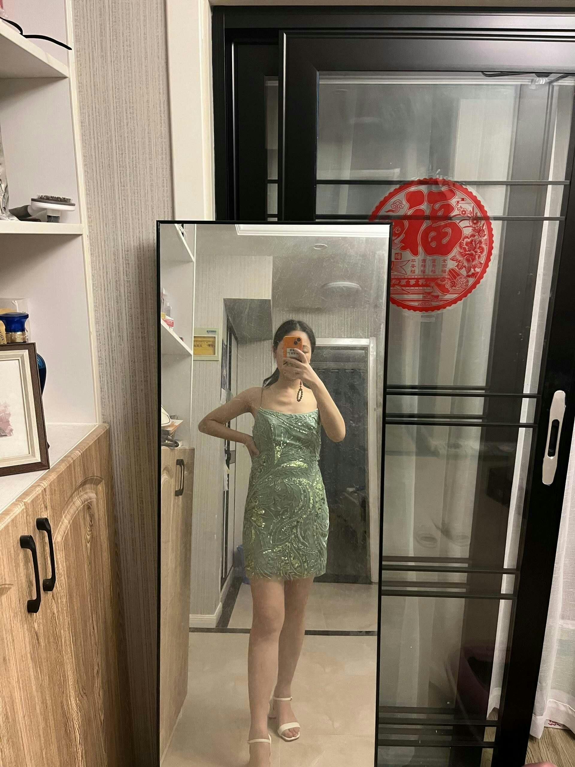 Green Spaghetti Straps Tight Glitter Homecoming Dress with Beaded