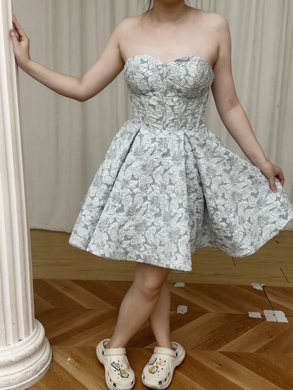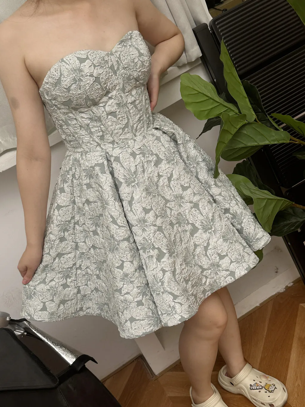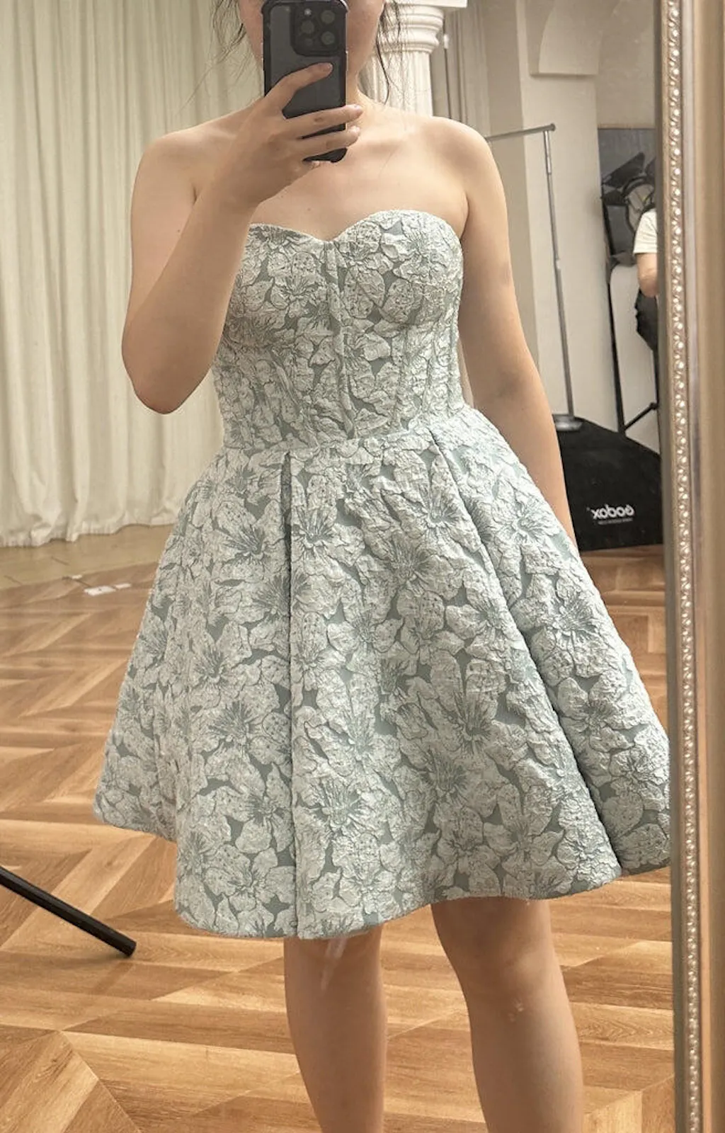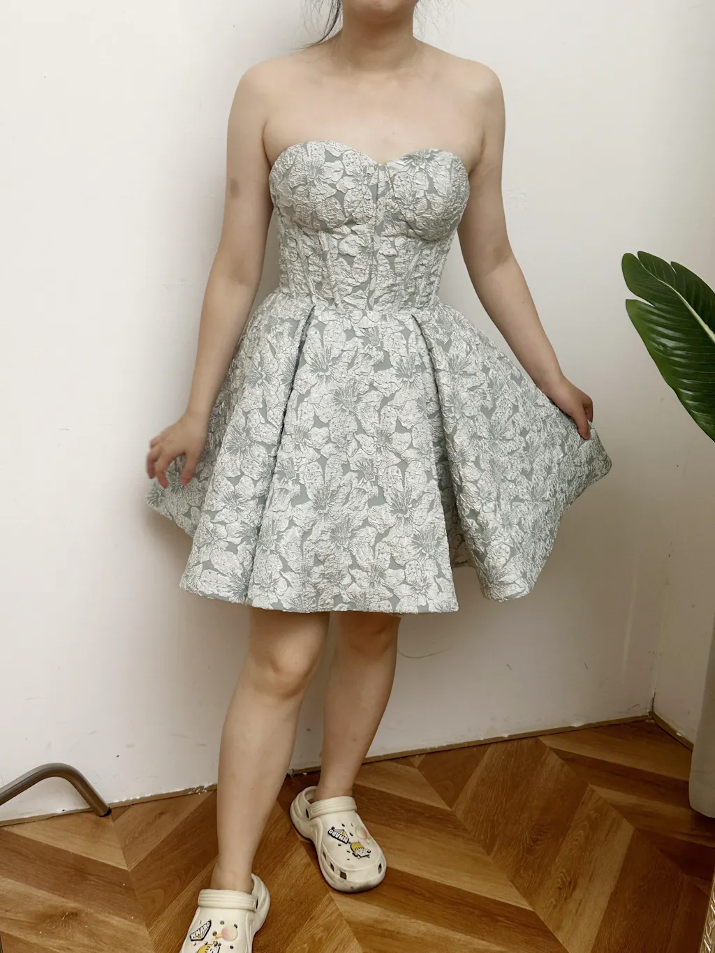 Grey Green A-Line Strapless Floral Short Homecoming Dress