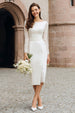 Ivory Bodycon Boat Neck Midi Wedding Reception Dress with Lace