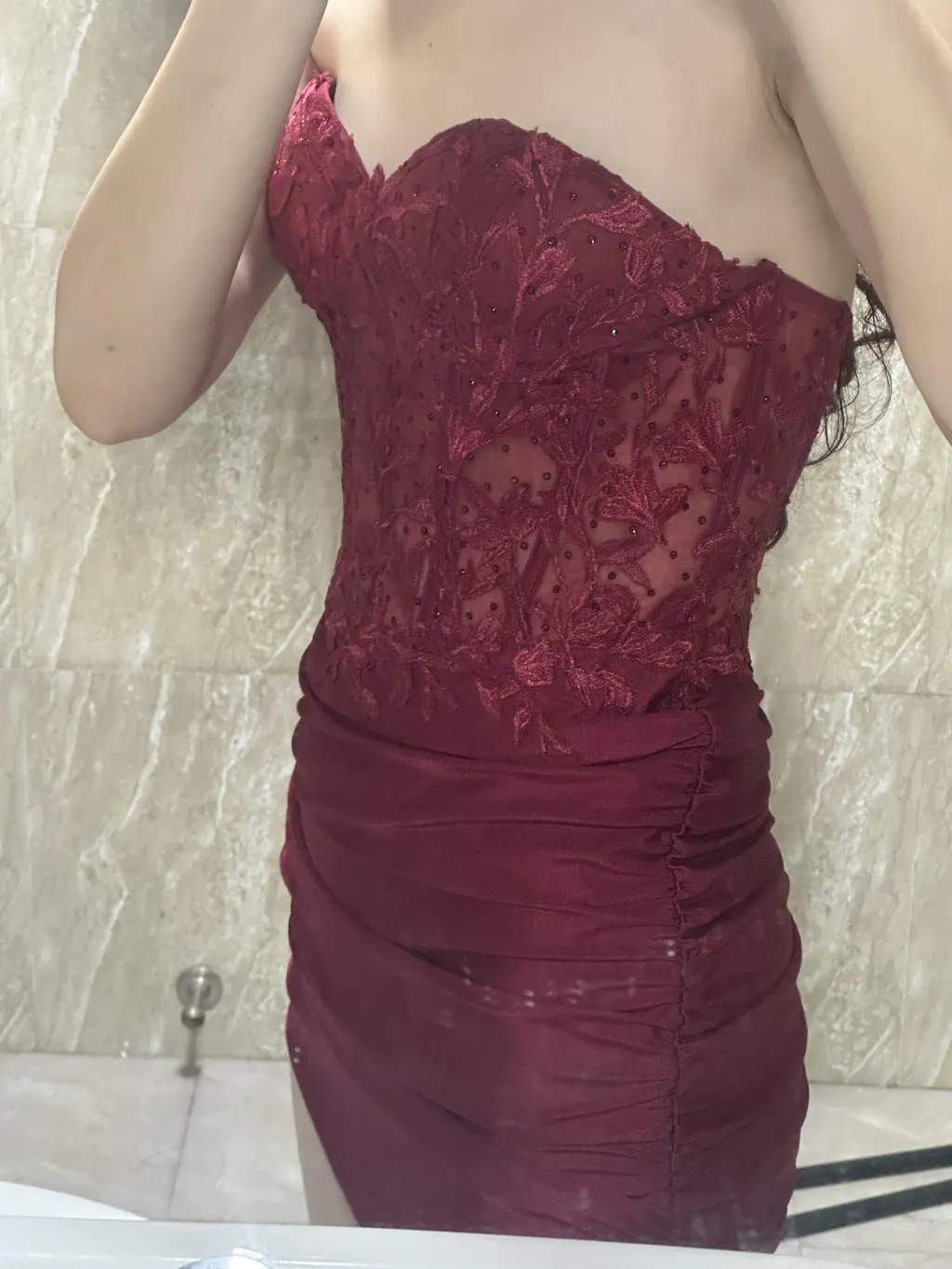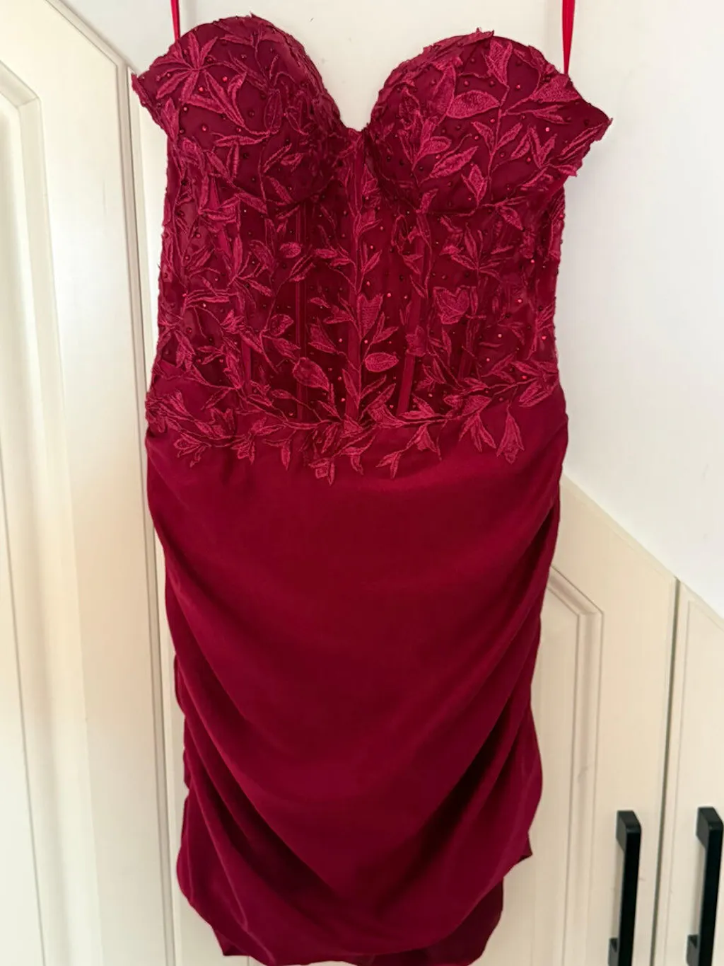 Burgundy Strapless Corset Pleated Tight Homecoming Dress with Appliques