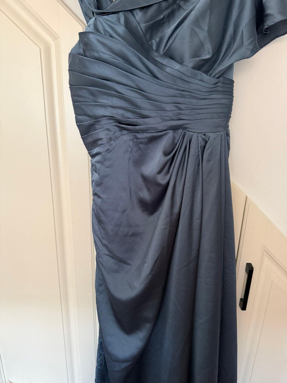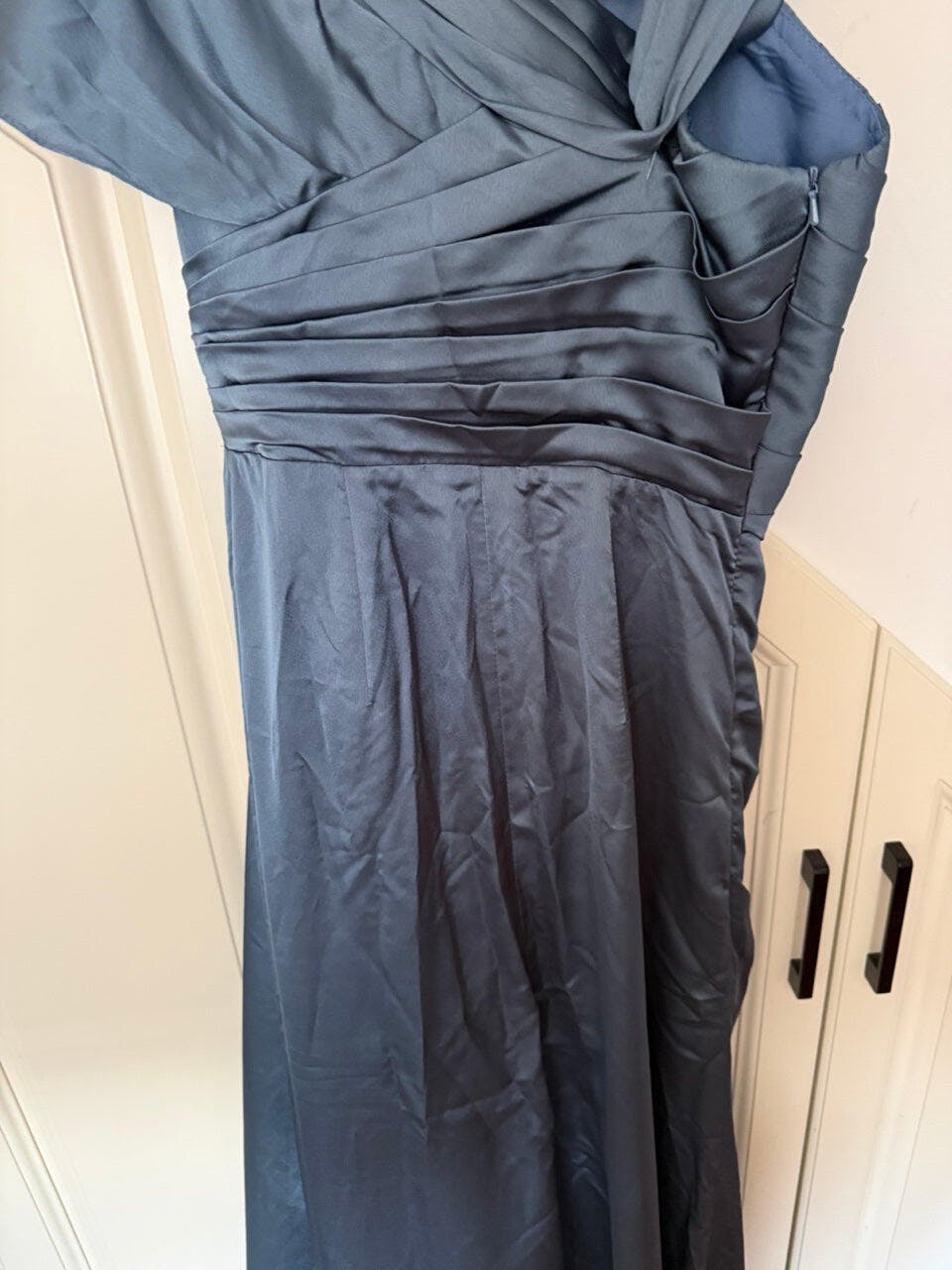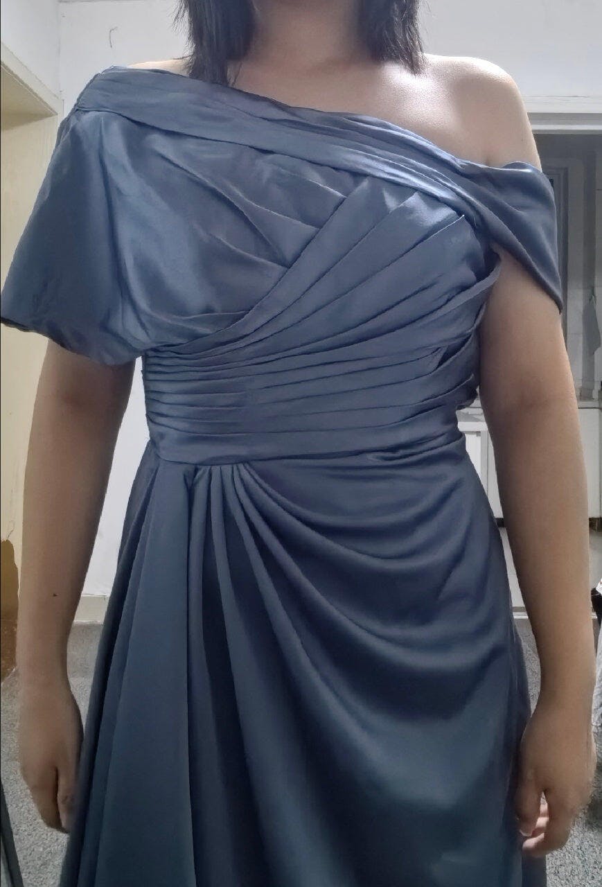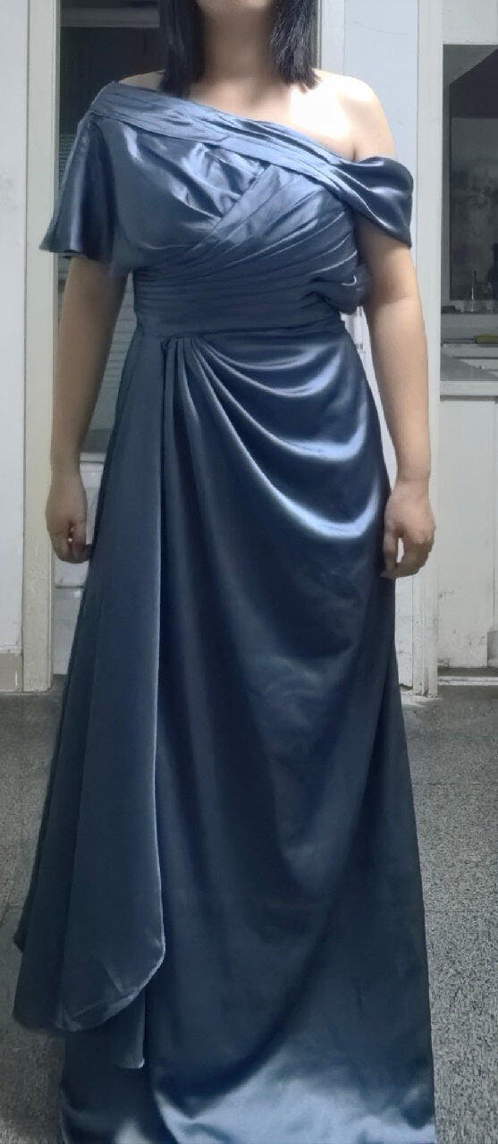 Mermaid Grey Blue One Shoulder Satin Ruched Formal Dress with Ruffles