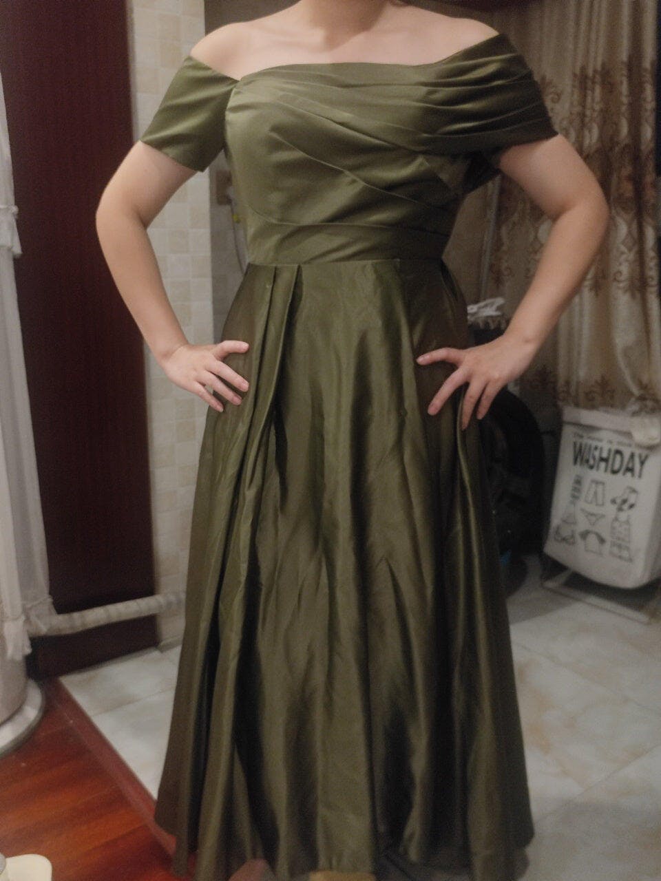 Details: Elevate any special occasion with our Olive A-Line Off the Shoulder Satin Dress. The luxurious satin fabric drapes elegantly, while the off-the-shoulder neckline adds a touch of sophistication. The A-line silhouette flatters every figure, making it the perfect choice for a mother of the bride dress.