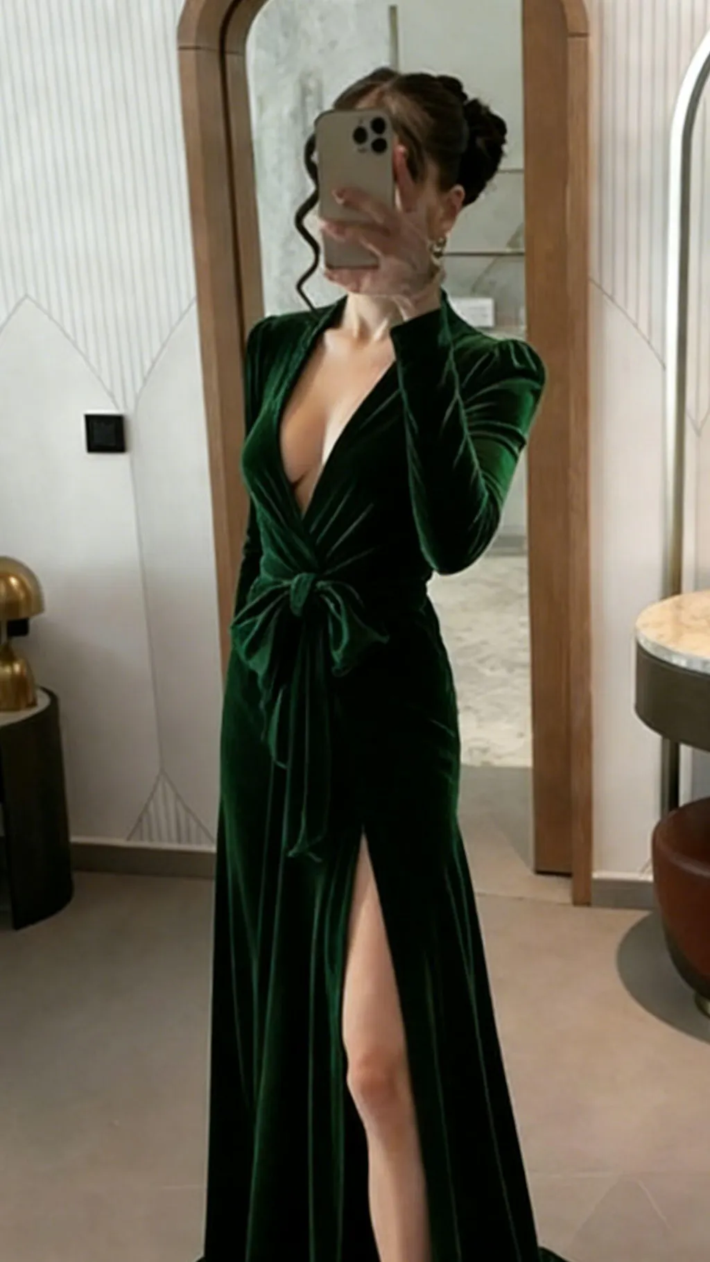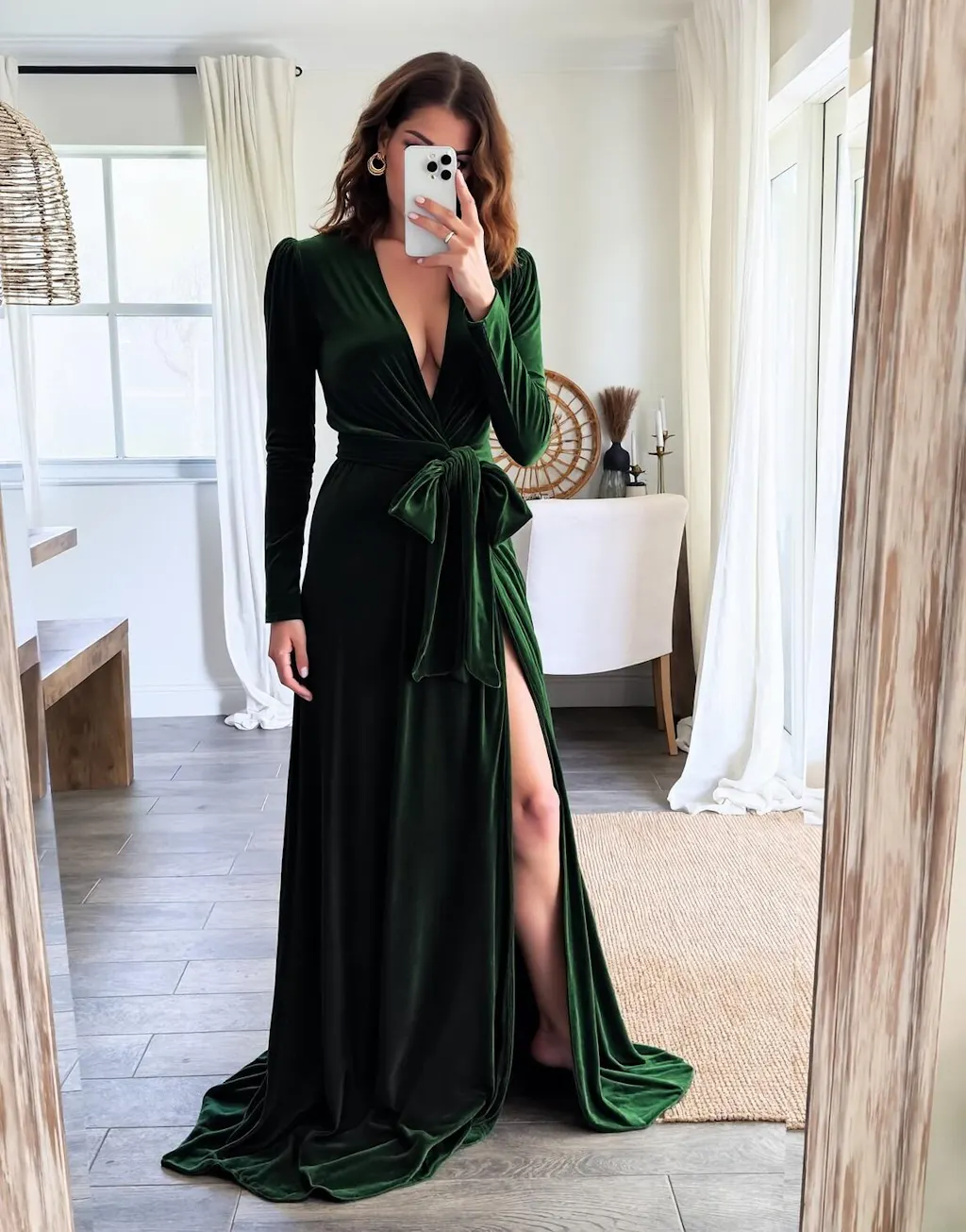 Peacock Blue Velvet A Line Pleated Long Sleeves Formal Dress with Sash