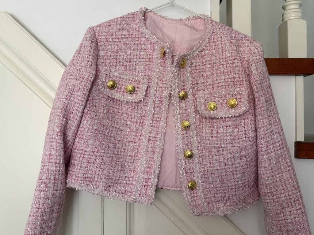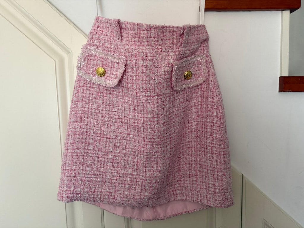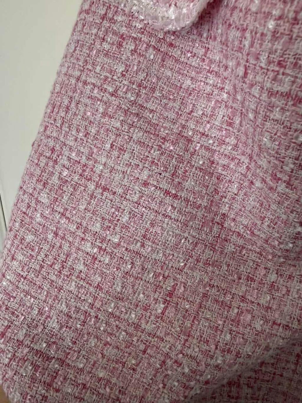 Pink Tweed 2 Piece Short Blazer Homecoming Outfits with Pockets
