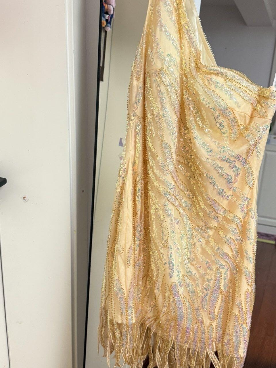 Details: Stand out from the crowd with our One Shoulder Blue Homecoming Dress! The dazzling golden sequins and tassel detail will make you shine like a star on your special night. Embrace your bold side in this unique one shoulder design. Dare to be different and turn heads at your homecoming!