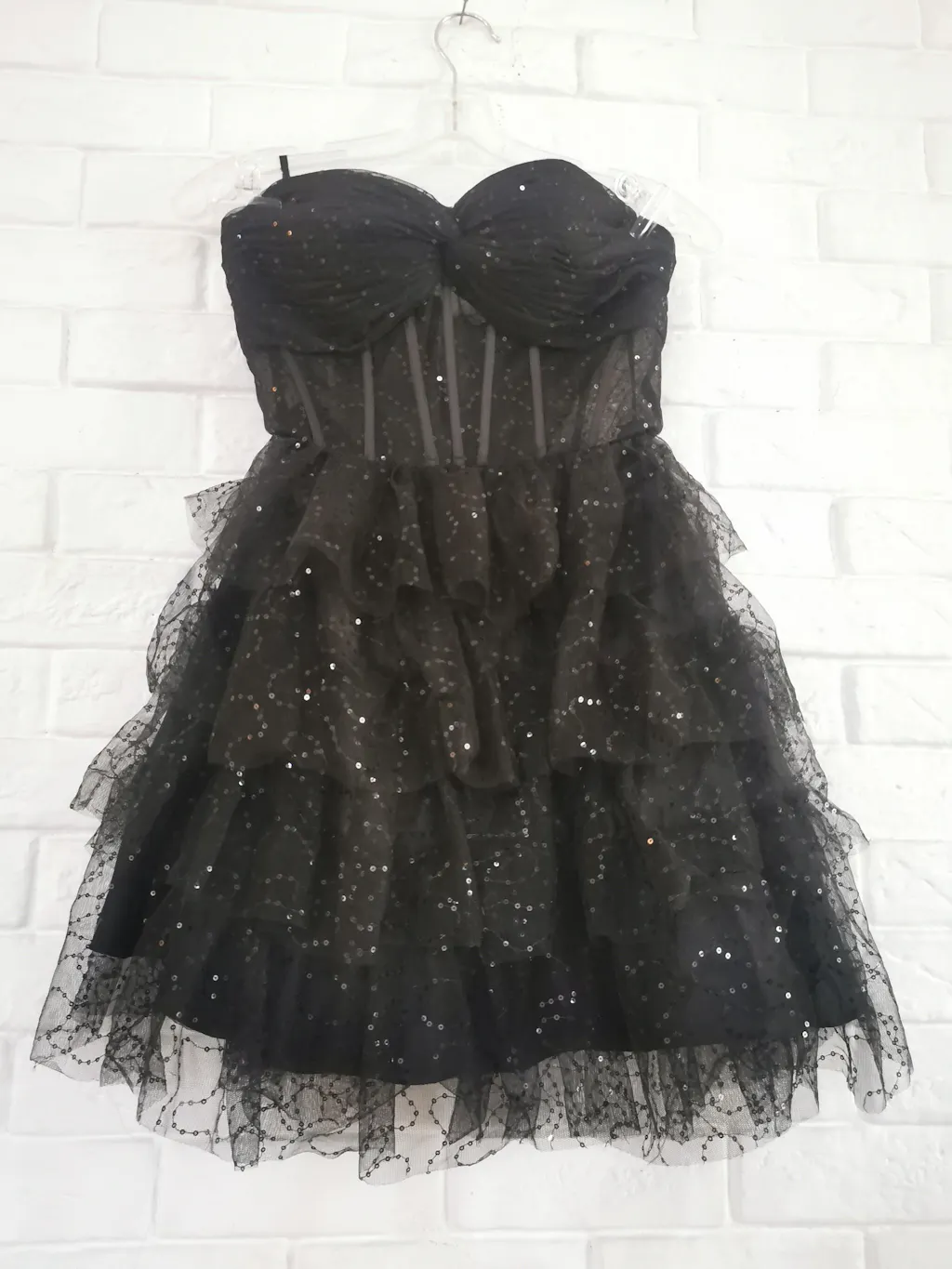 Sparkly A Line Black Sweetheart Tiered Corset Cute Homecoming Dress