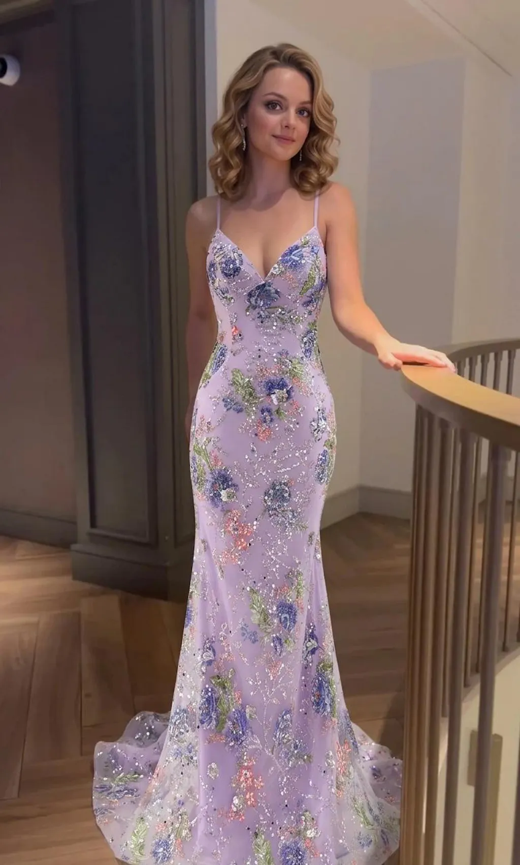 Sparkly Black Floral Mermaid Lace-Up Back Long Prom Dress