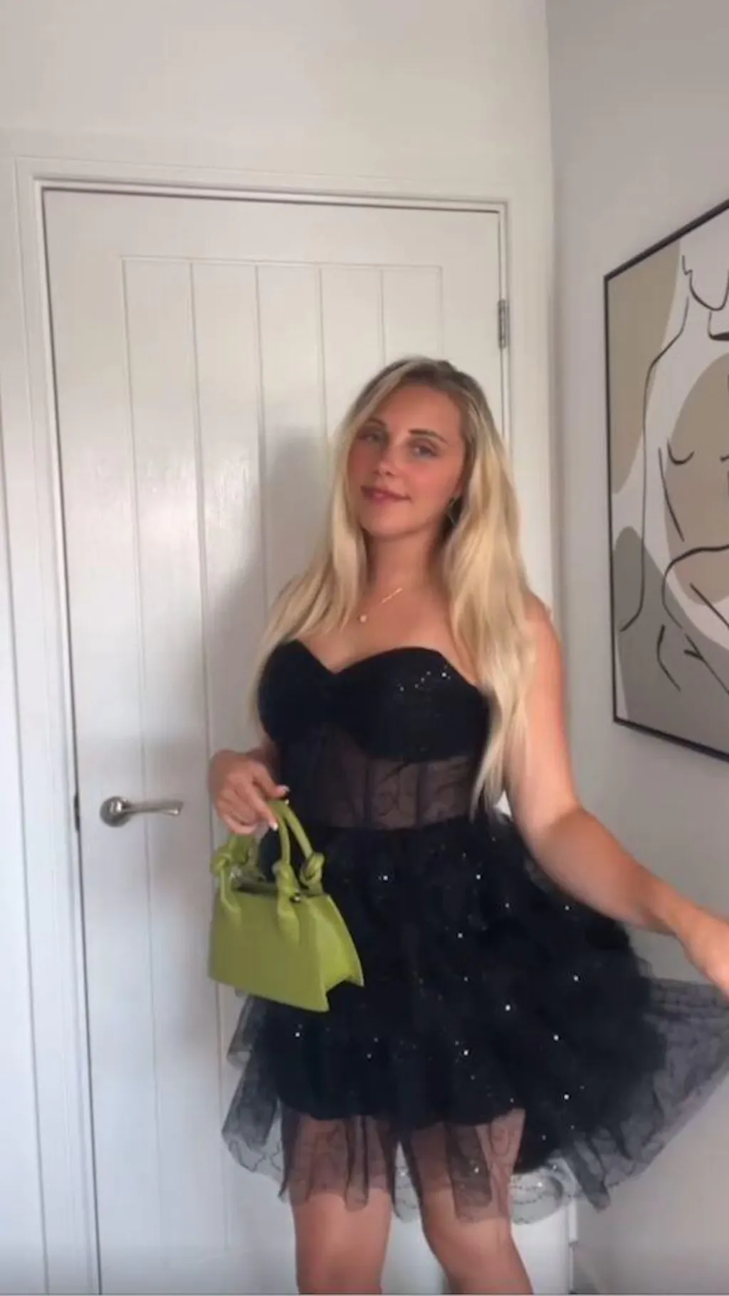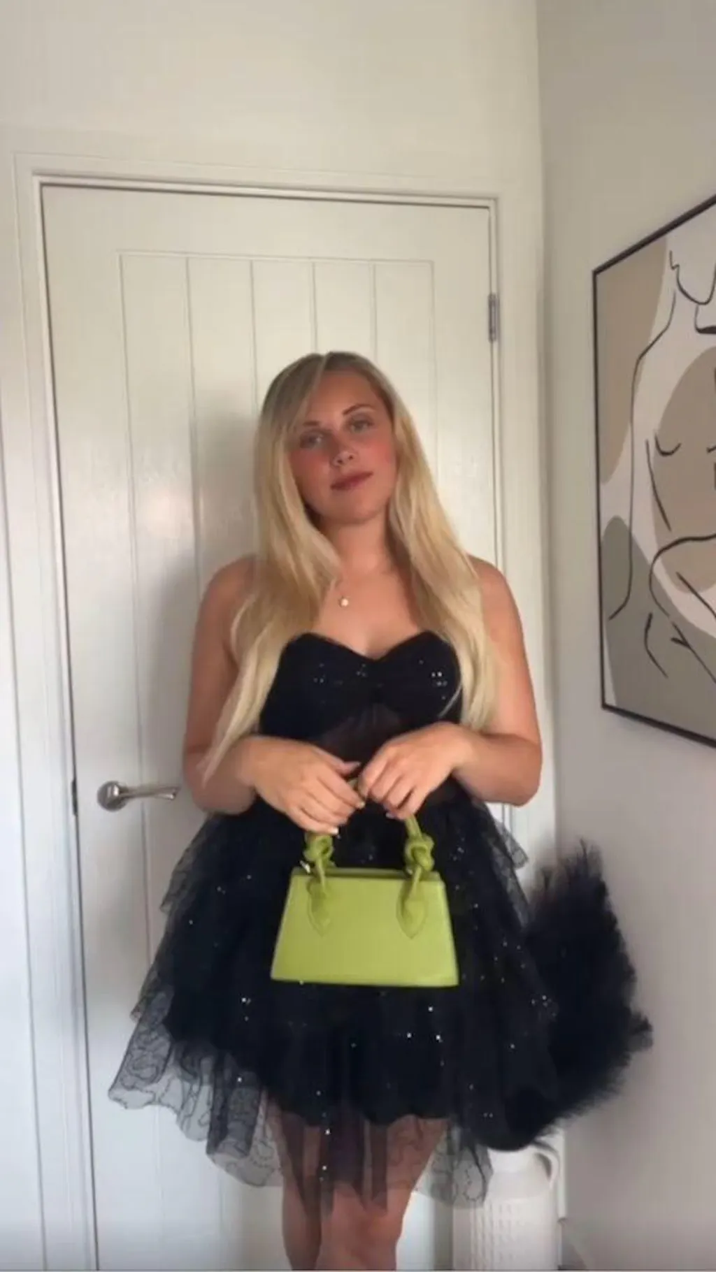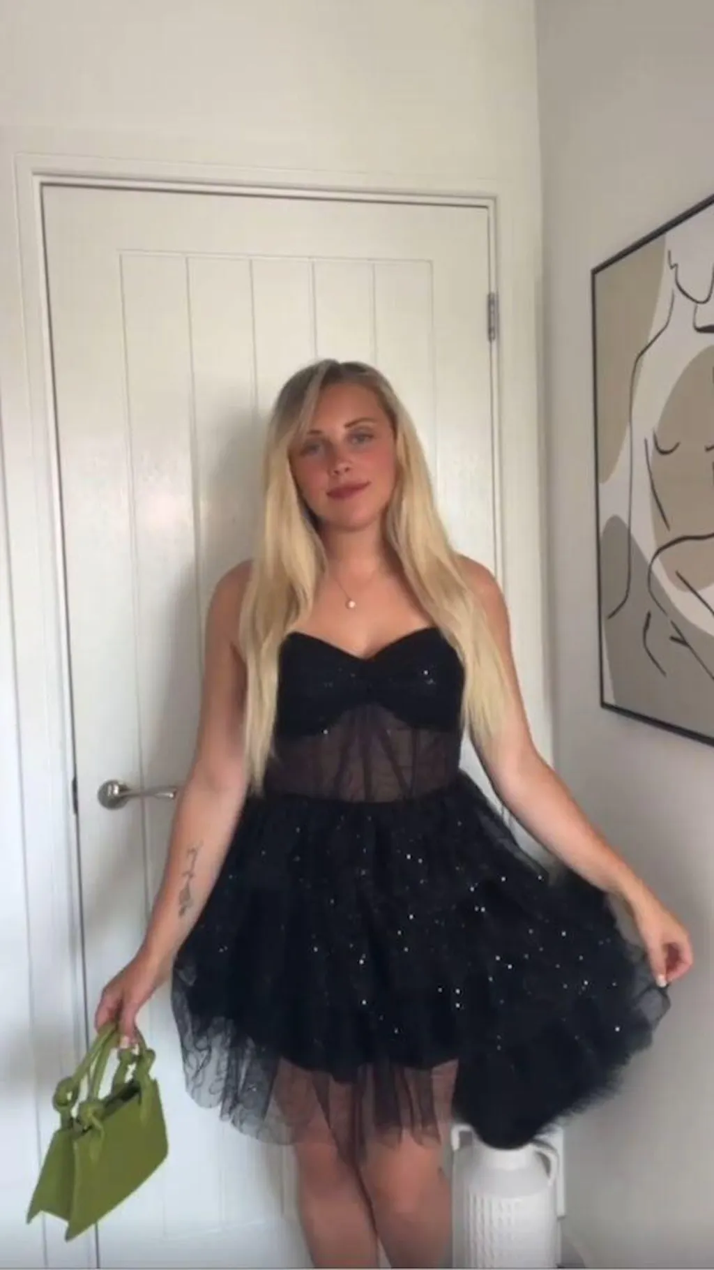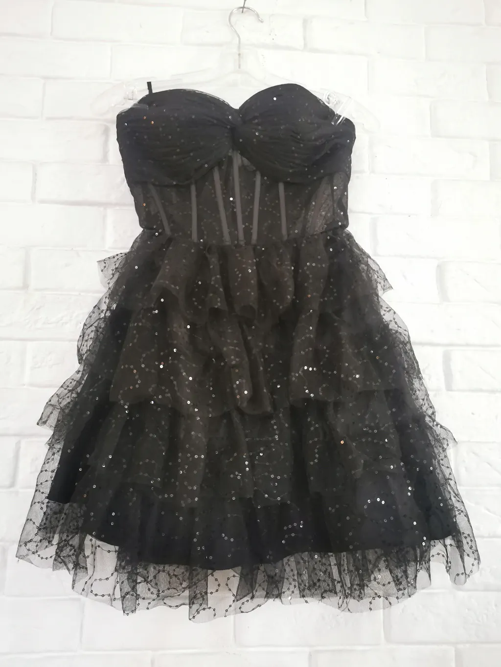 Sparkly Black Strapless Tiered Corset Short Homecoming Dress