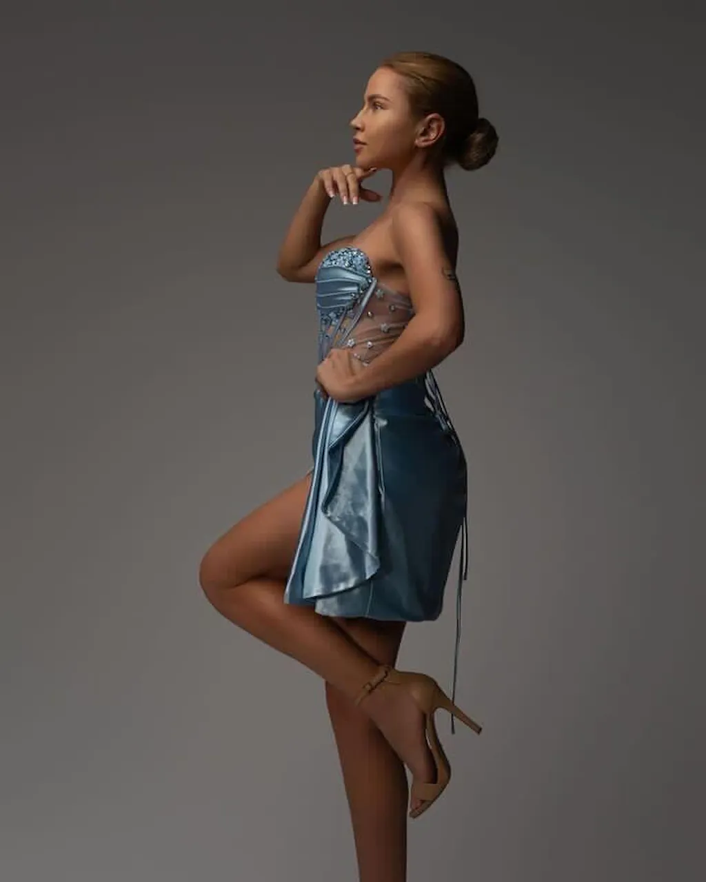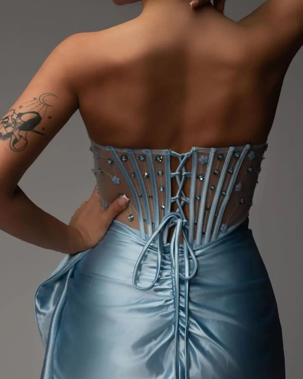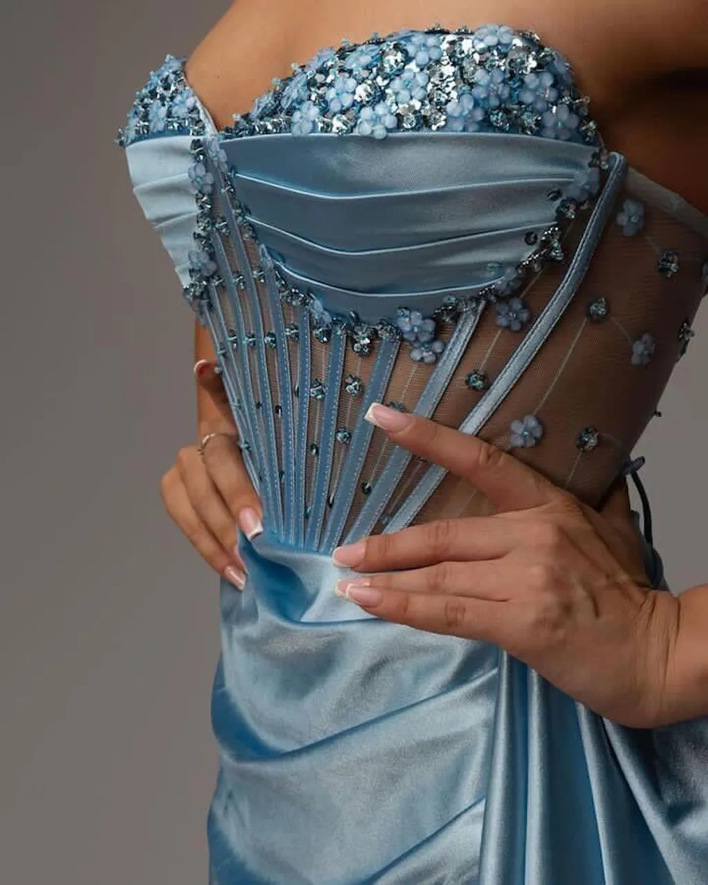 Sparkly Blue Bodycon Sweetheart Corset Homecoming Dress with Beading