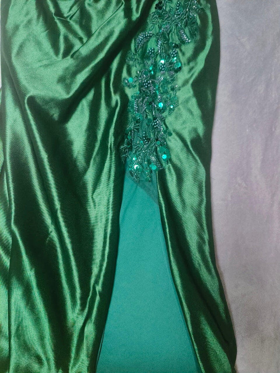 Sparkly Dark Green Corset Satin Mermaid Long Prom Dress with Slit