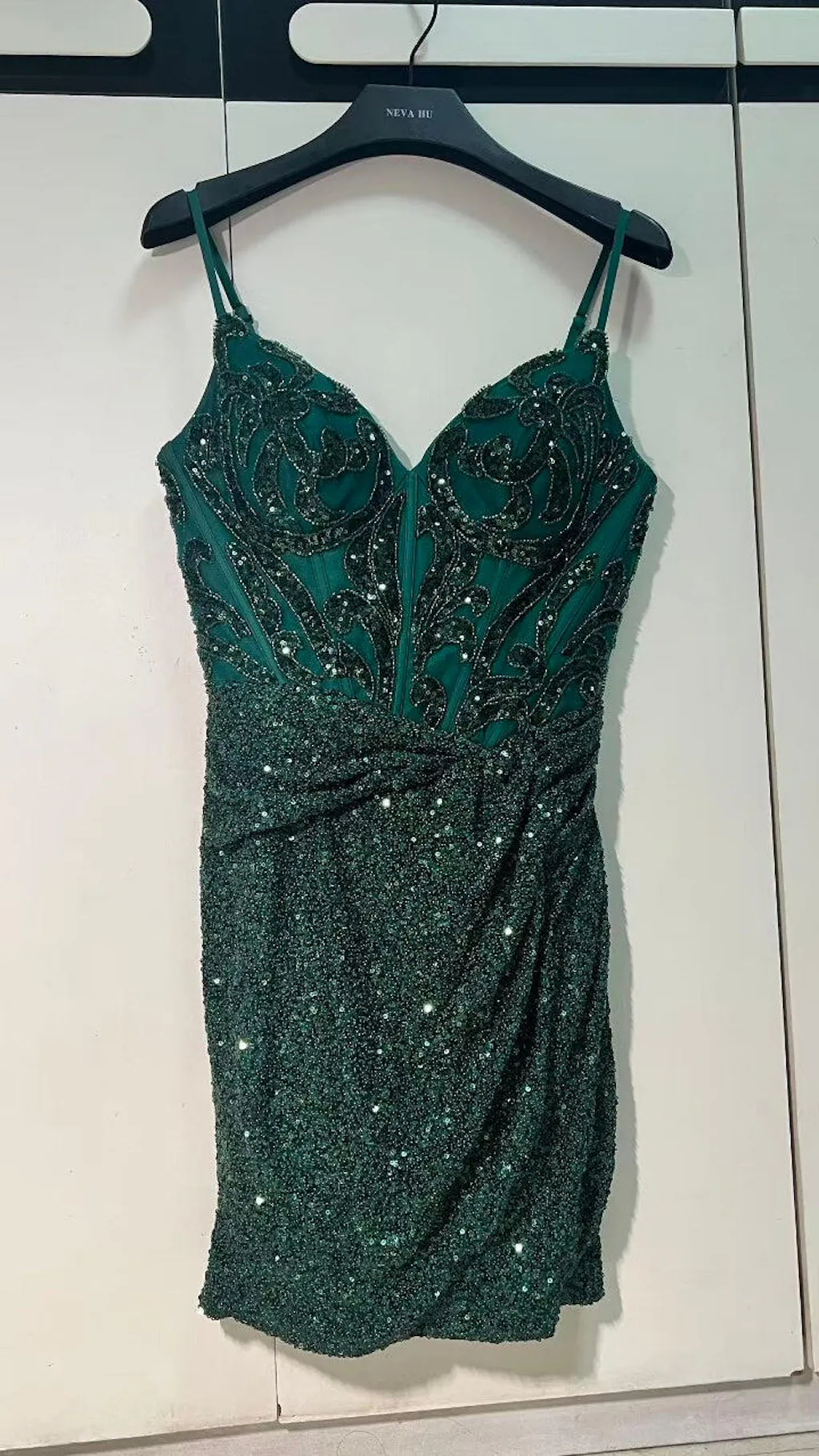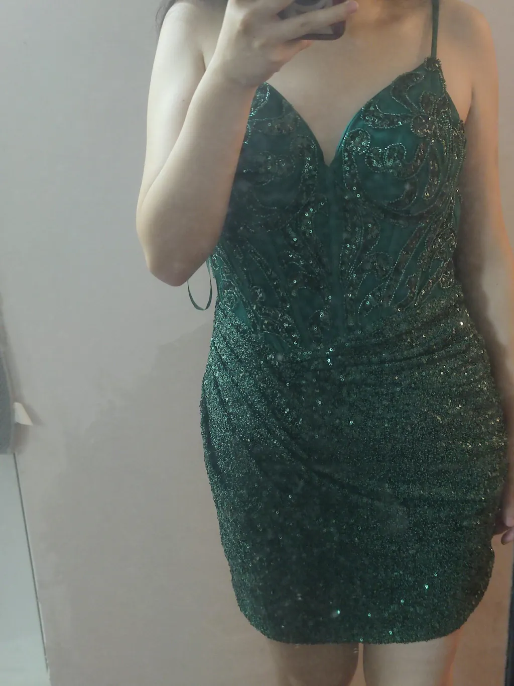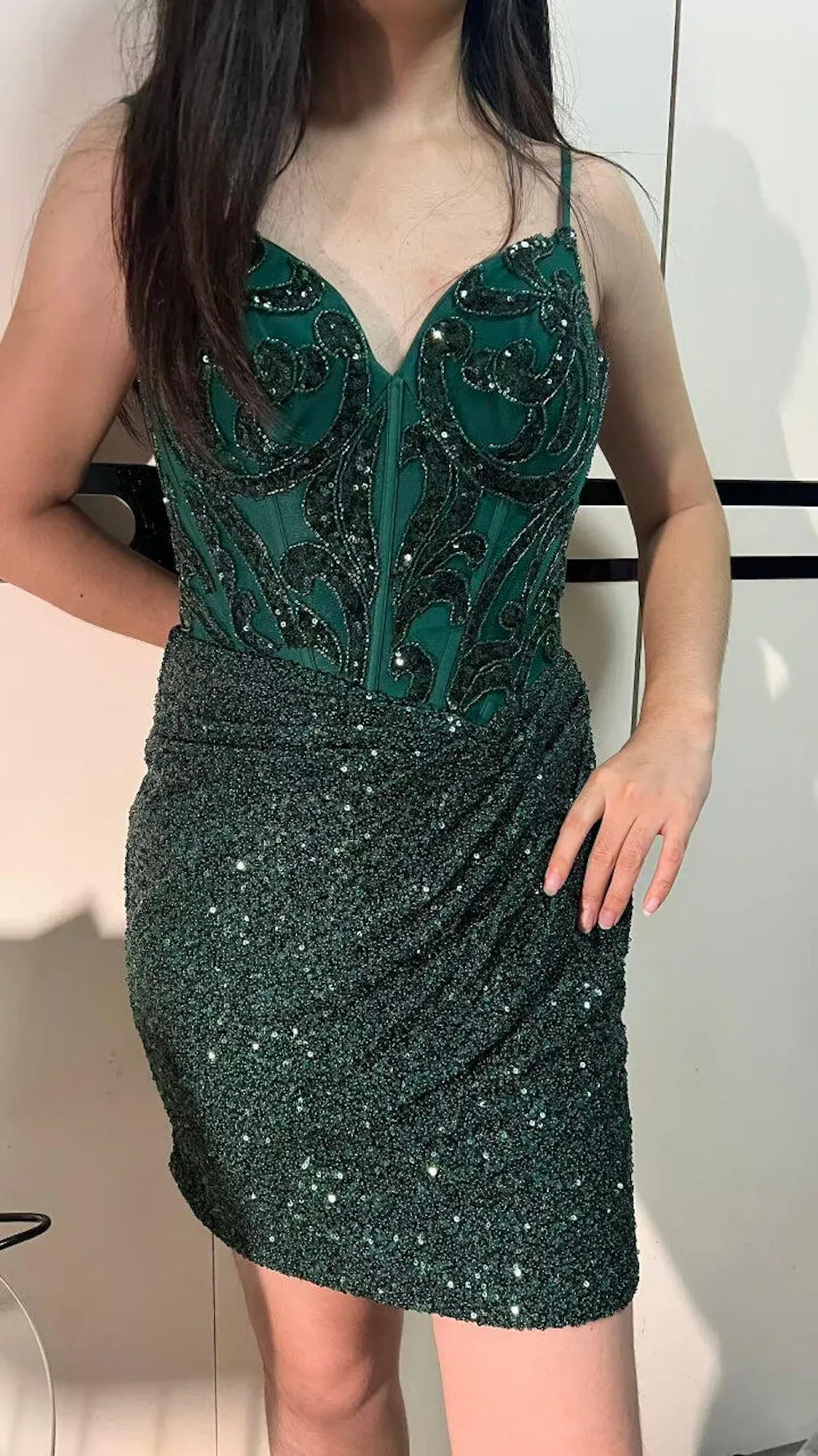 Sparkly Dark Green Sequins Tight Corset Short Homecoming Dress