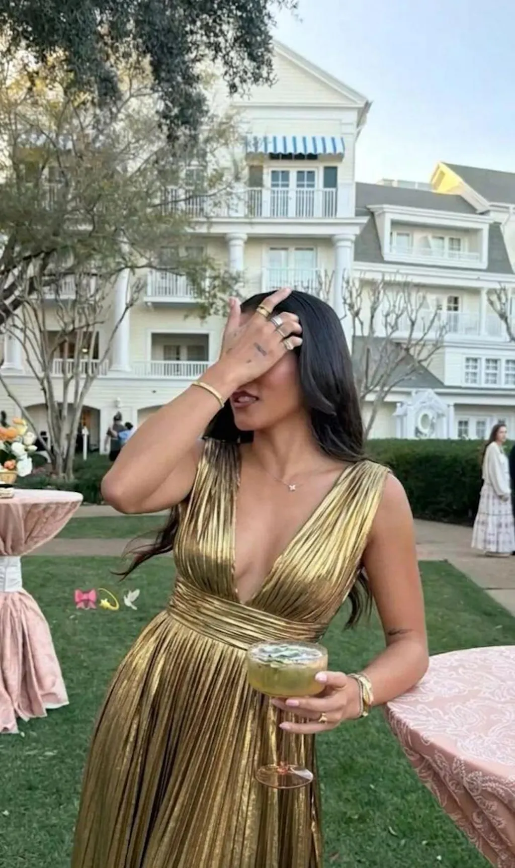 Sparkly Gold Plus Size Metallic A-Line V-Neck Pleated Long Formal Dress