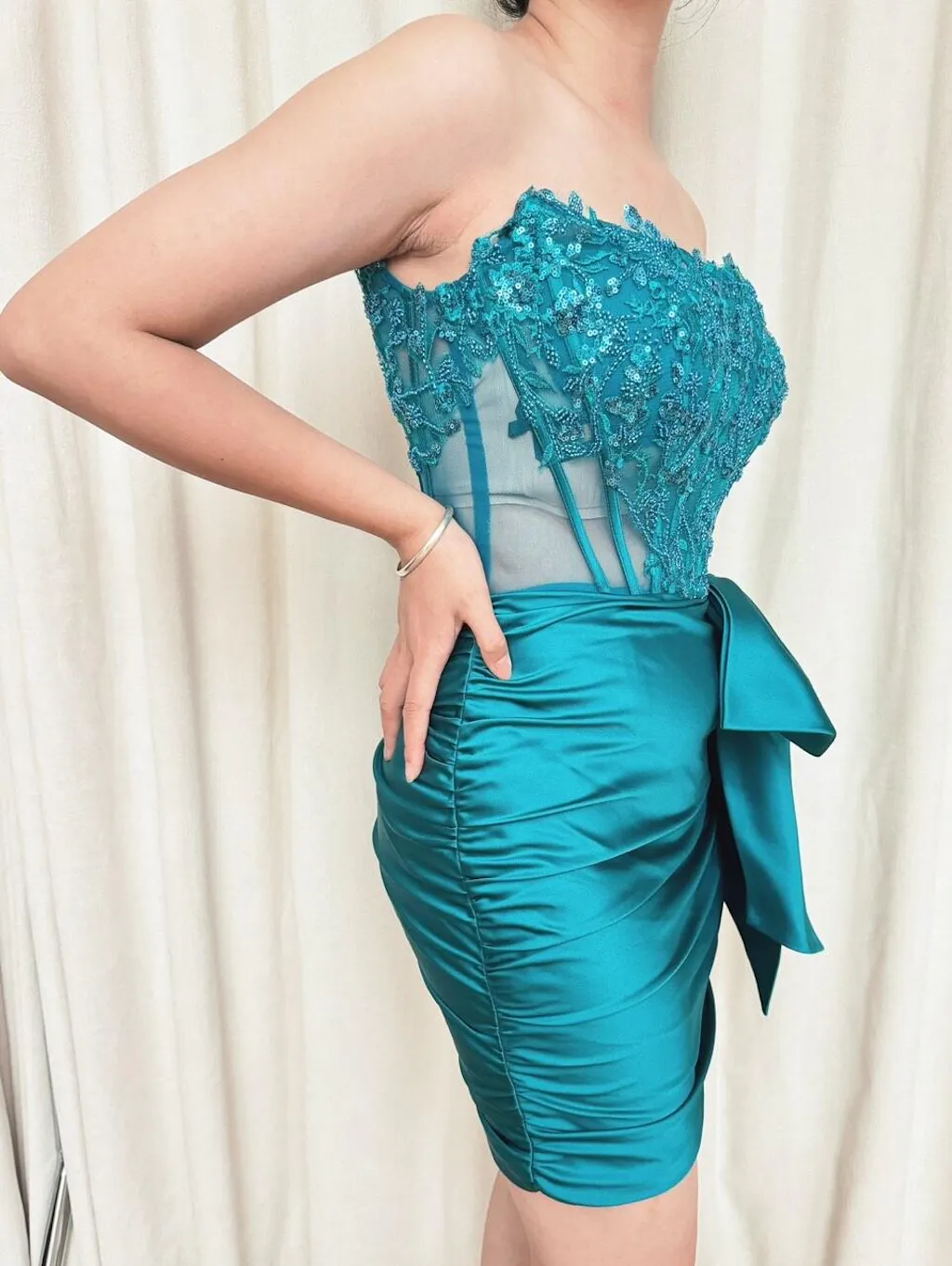 Sparkly Navy Strapless Beaded Appliques Tight Homecoming Dress