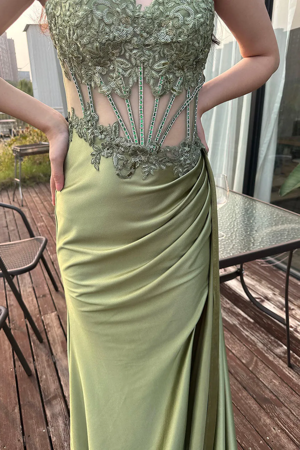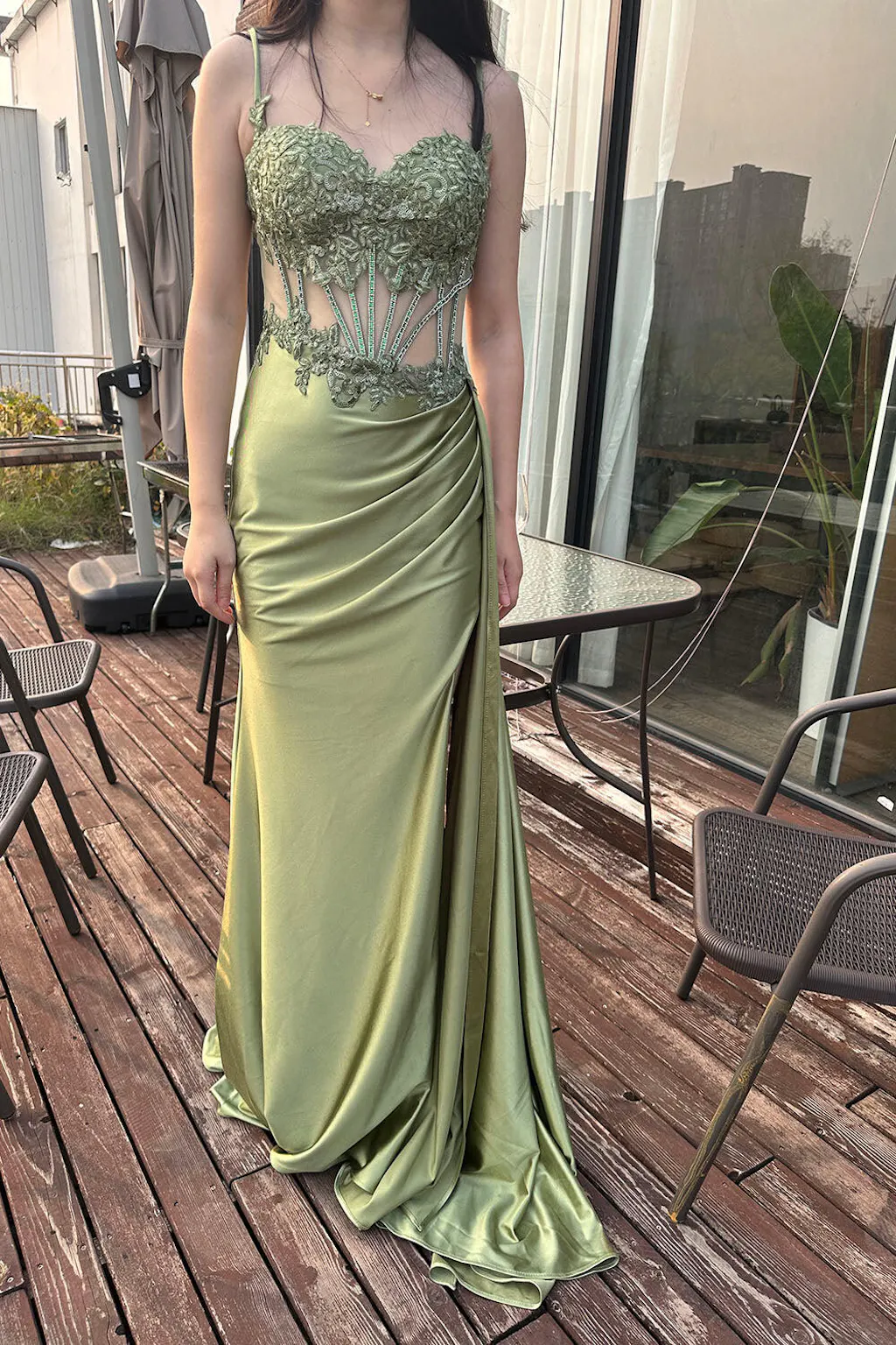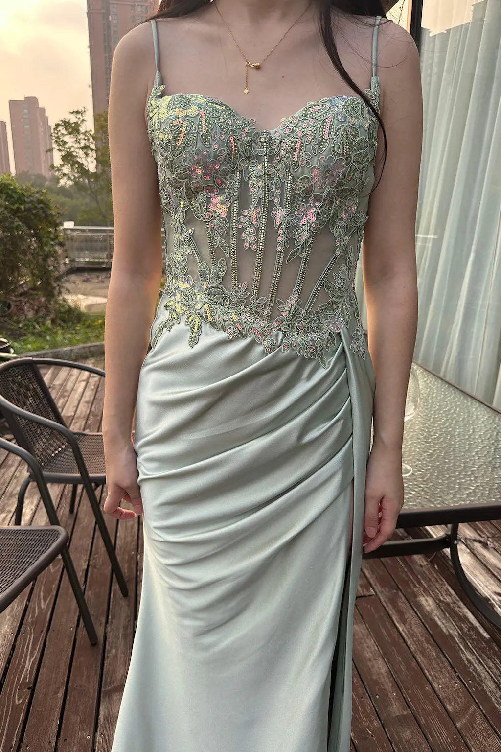 Stylish Lilac Mermaid Pleated Sequin Corset Long Prom Dress With Slit
