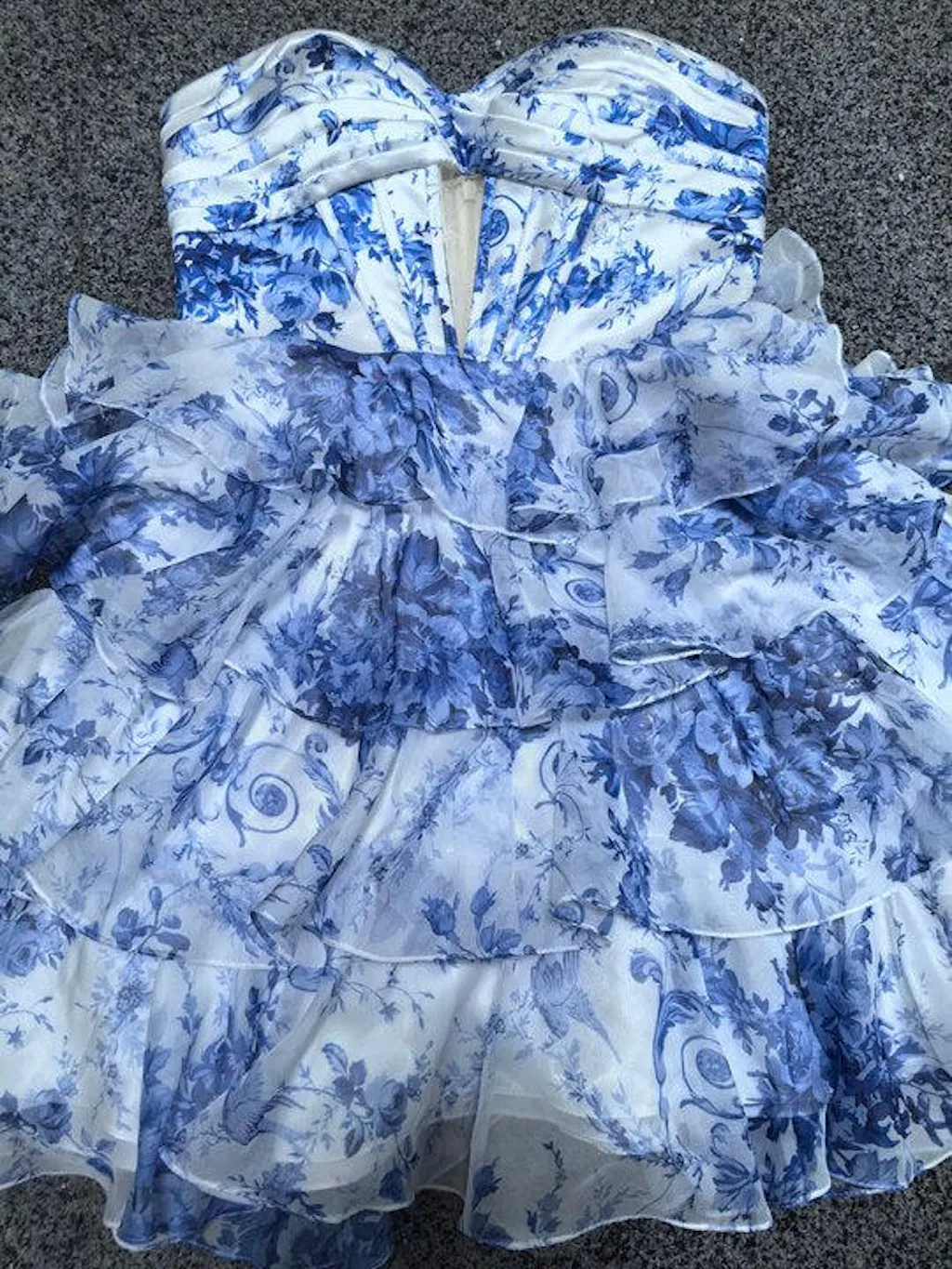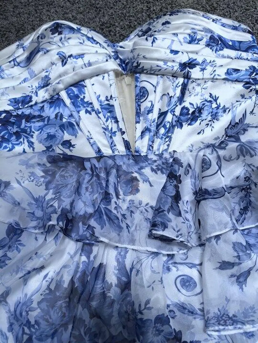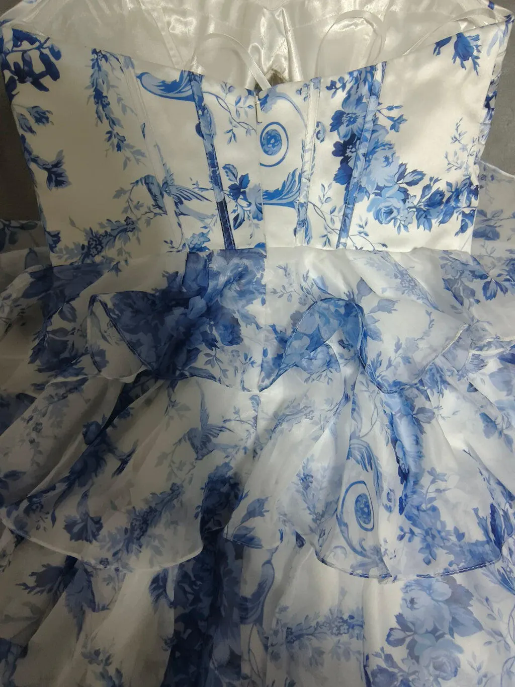 White and Blue Floral Ruffled Short Corset Homecoming Dress with Keyhole