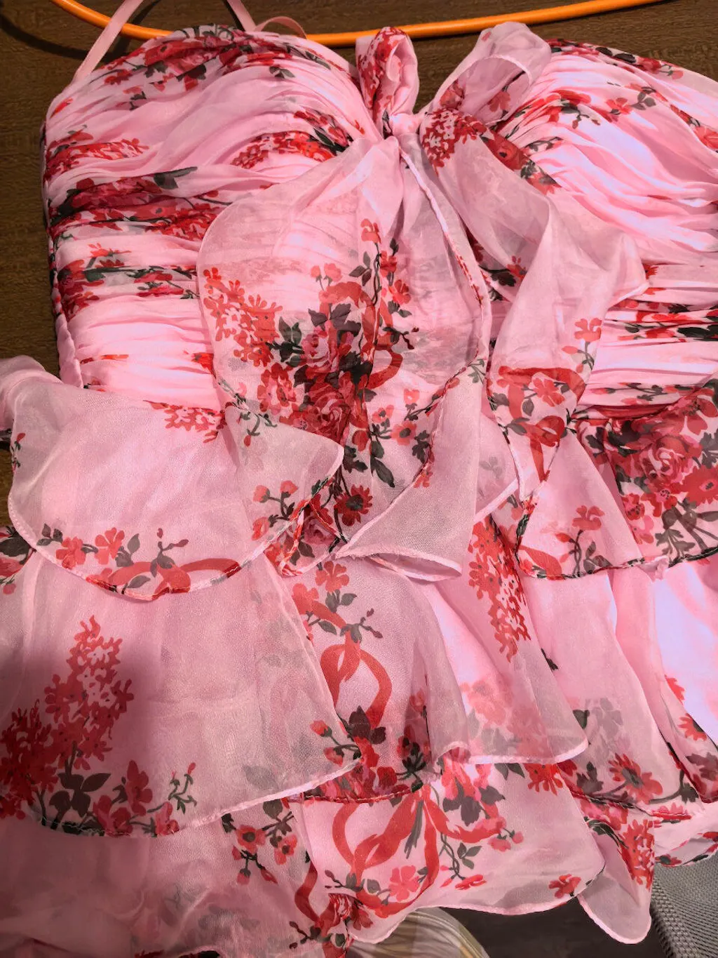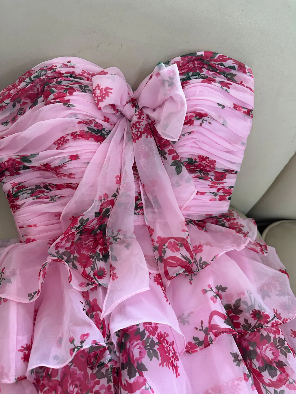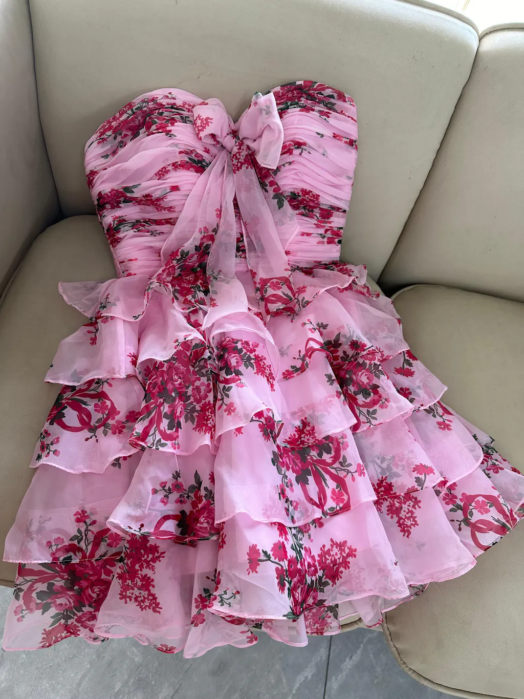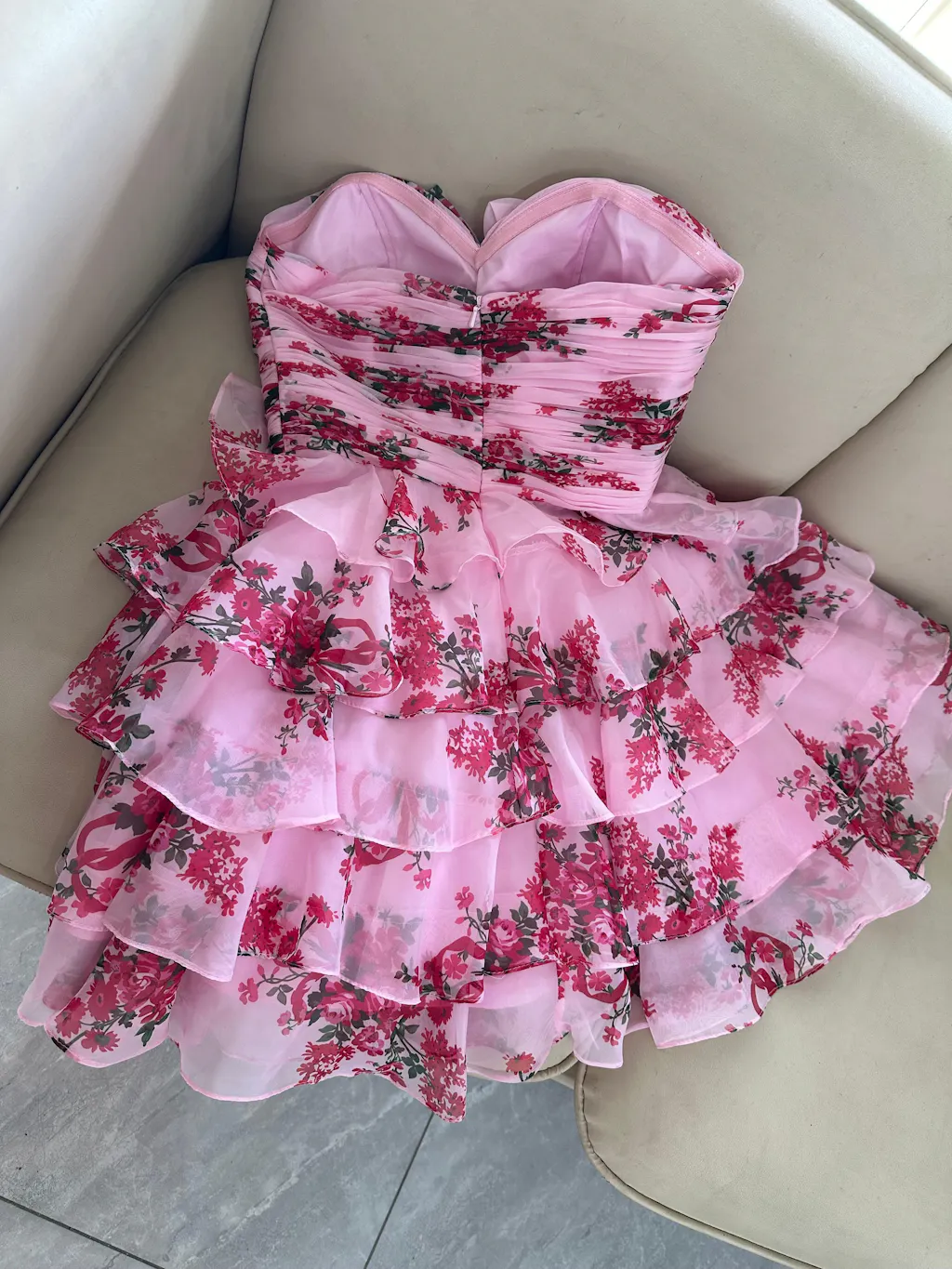 White and Blue Floral Ruffled Strapless Short Homecoming Dress with Bow