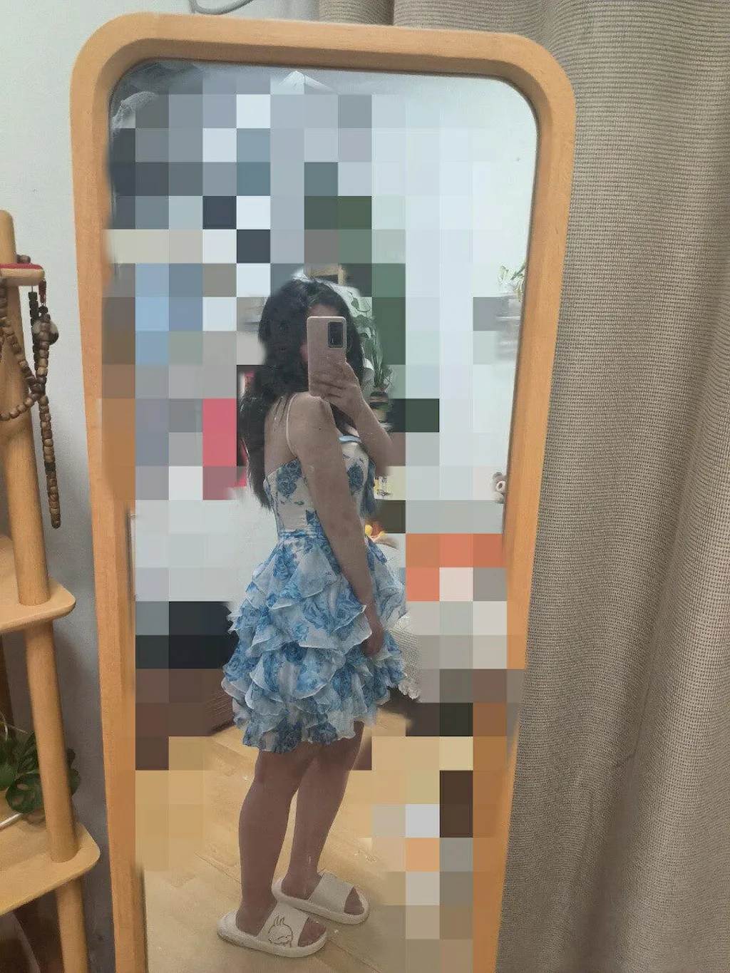 White Blue Flower Corset Ruffled A Line Short Homecoming Dress with Bow