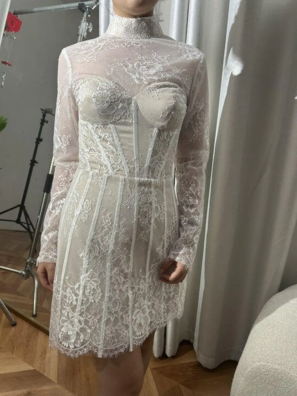 White Long Sleeves Corset Lace Short Homecoming Dress