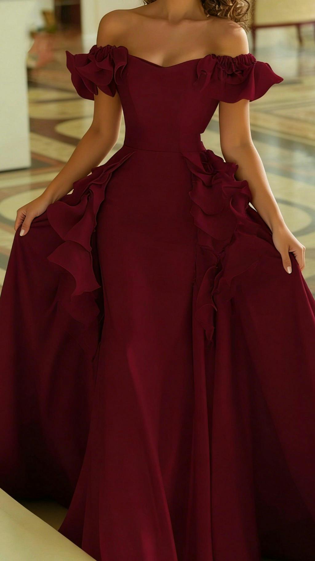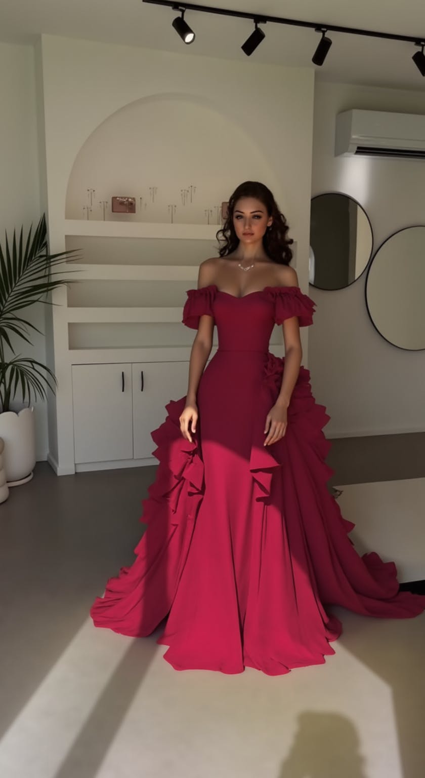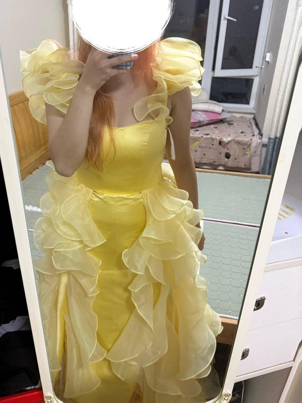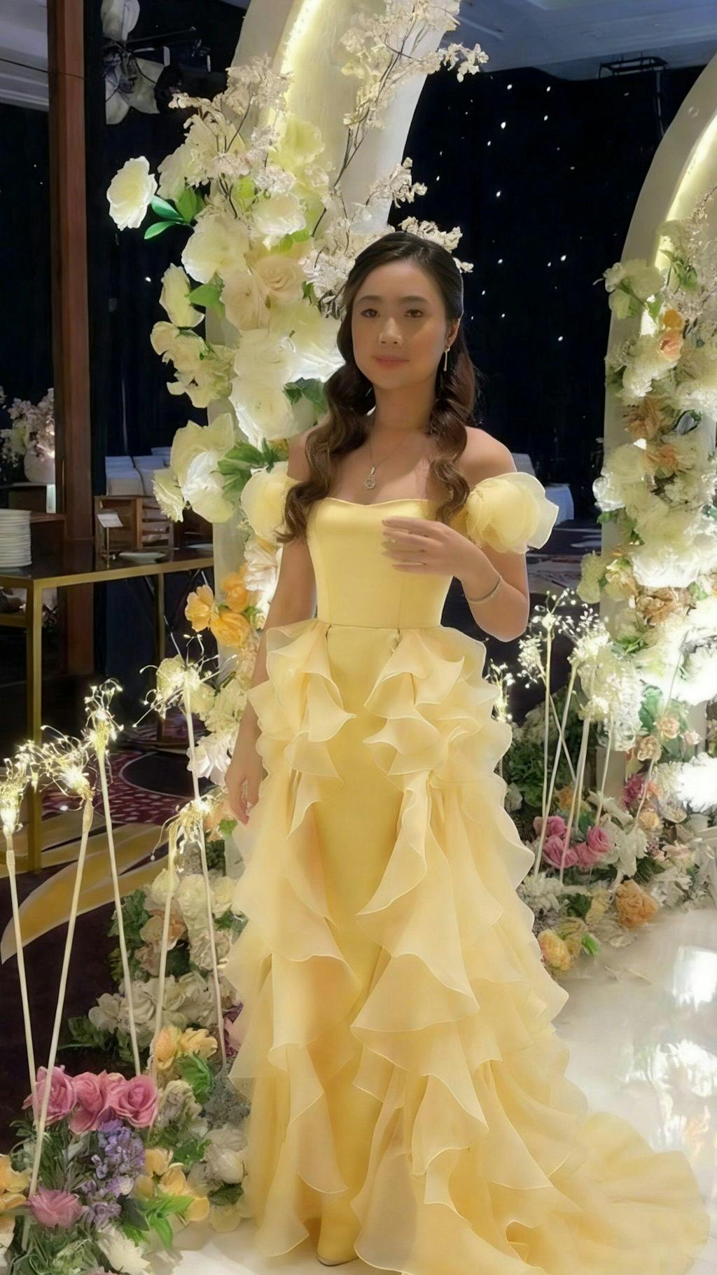 Yellow Satin Long Off the Shoulder Prom Dress with Ruffles